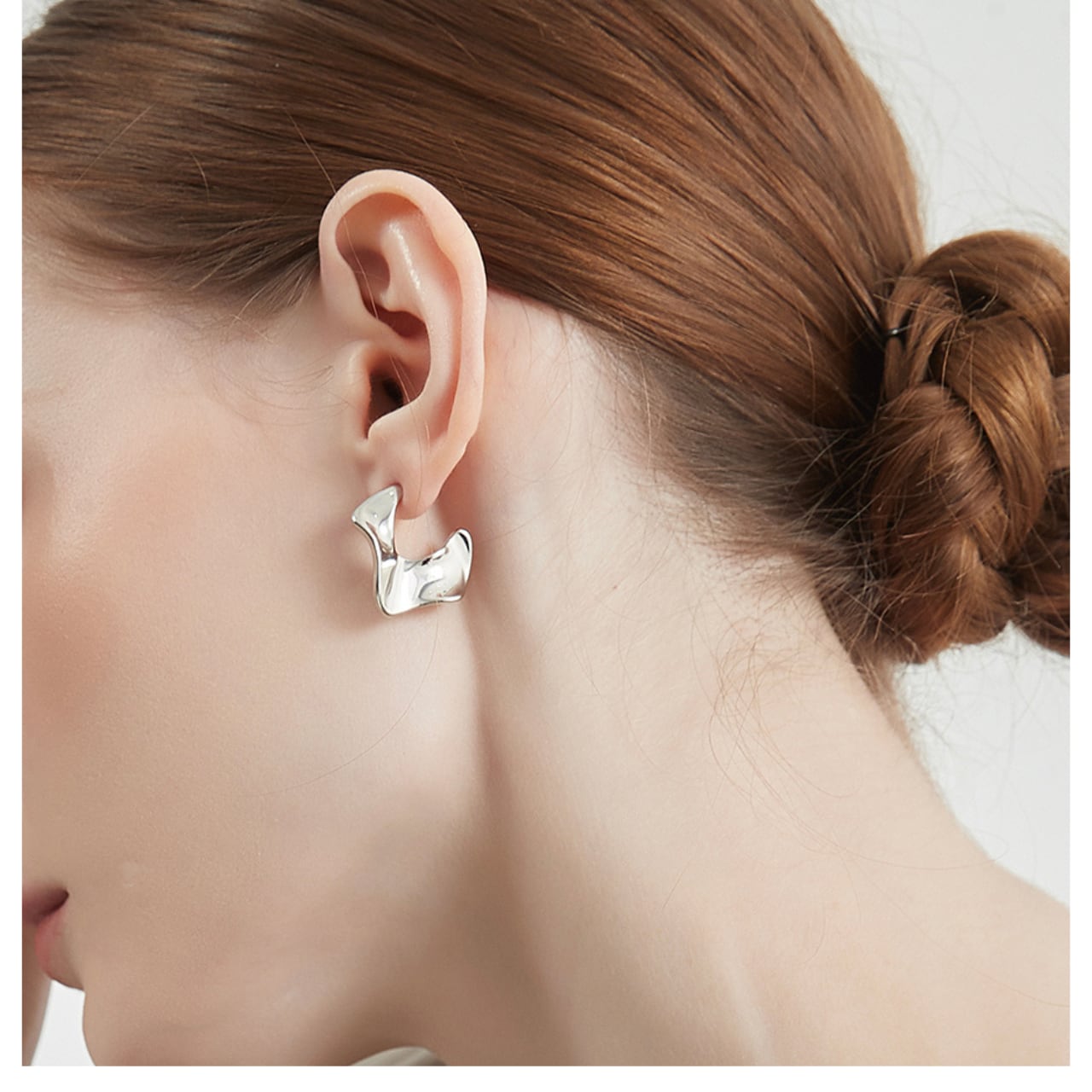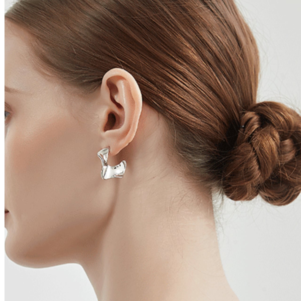 非対称のデザインが目を惹くメタルフープピアス。シンプルなデザインながら、存在感のあるシルエットが洗練された印象を演出します。どんなスタイルにも合わせやすく、デイリーユースから特別な日の装いまで幅広く活躍してくれるでしょう。