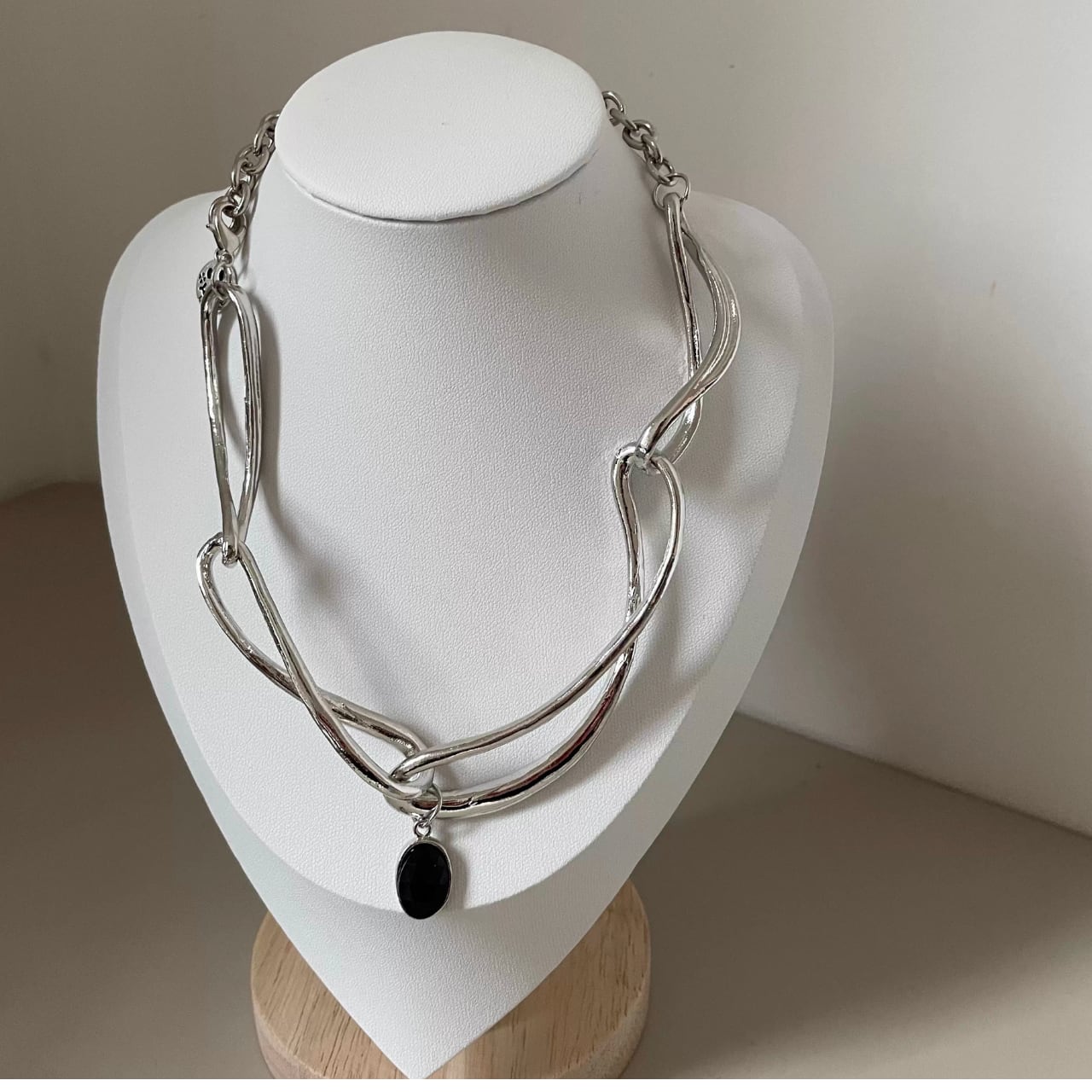 非対称デザインが目を惹くネックレスは、シンプルながらも存在感のあるアイテムです。