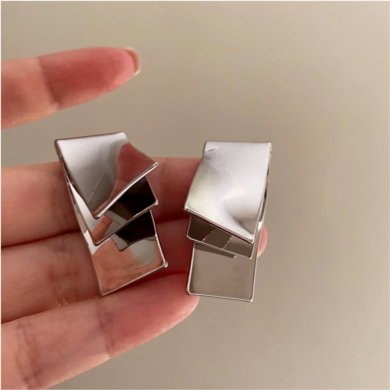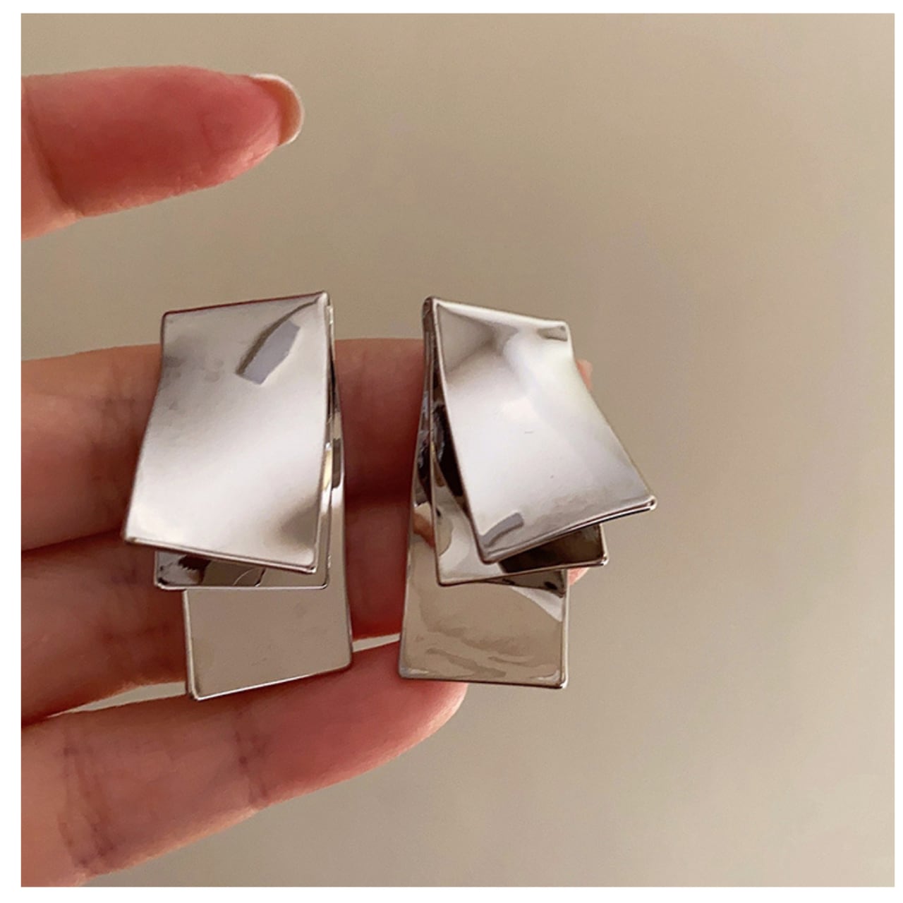 幾何学模様が美しいレイヤードスタッドピアス。重ねられた幾何学的なデザインが、シンプルながらも洗練された印象を与えてくれます。どんなスタイルにも合わせやすく、デイリーユースから特別な日の装いまで幅広く活躍します。さりげない輝きが、あなたの魅力を引き立てます。