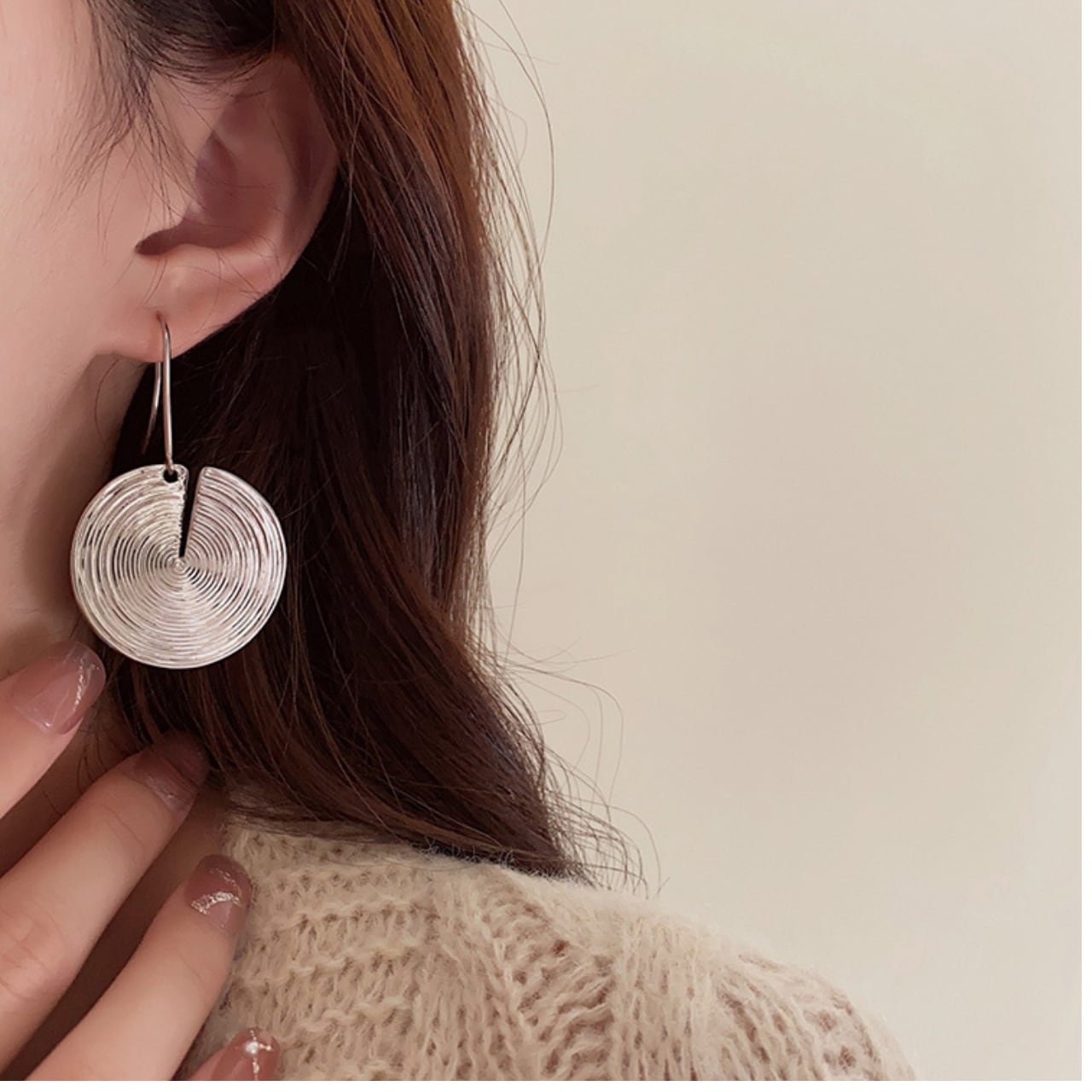 螺旋模様が目を惹くメタルピアス。さりげない切れ込みが、洗練された印象を与えます。シンプルながらも存在感のあるデザインは、普段使いからちょっとしたお出かけまで幅広く活躍します。どんなスタイルにも合わせやすく、一つ持っていると重宝すること間違いなしです。