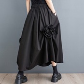 3D Flower Motif A-Line Long Skirt L00070
