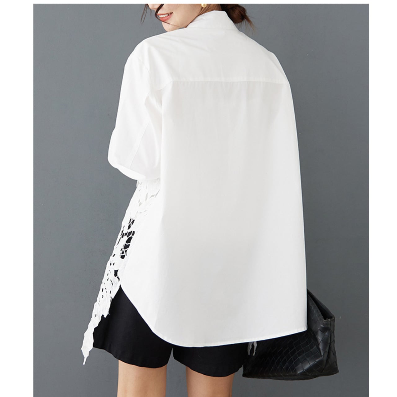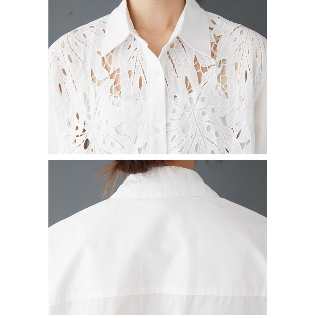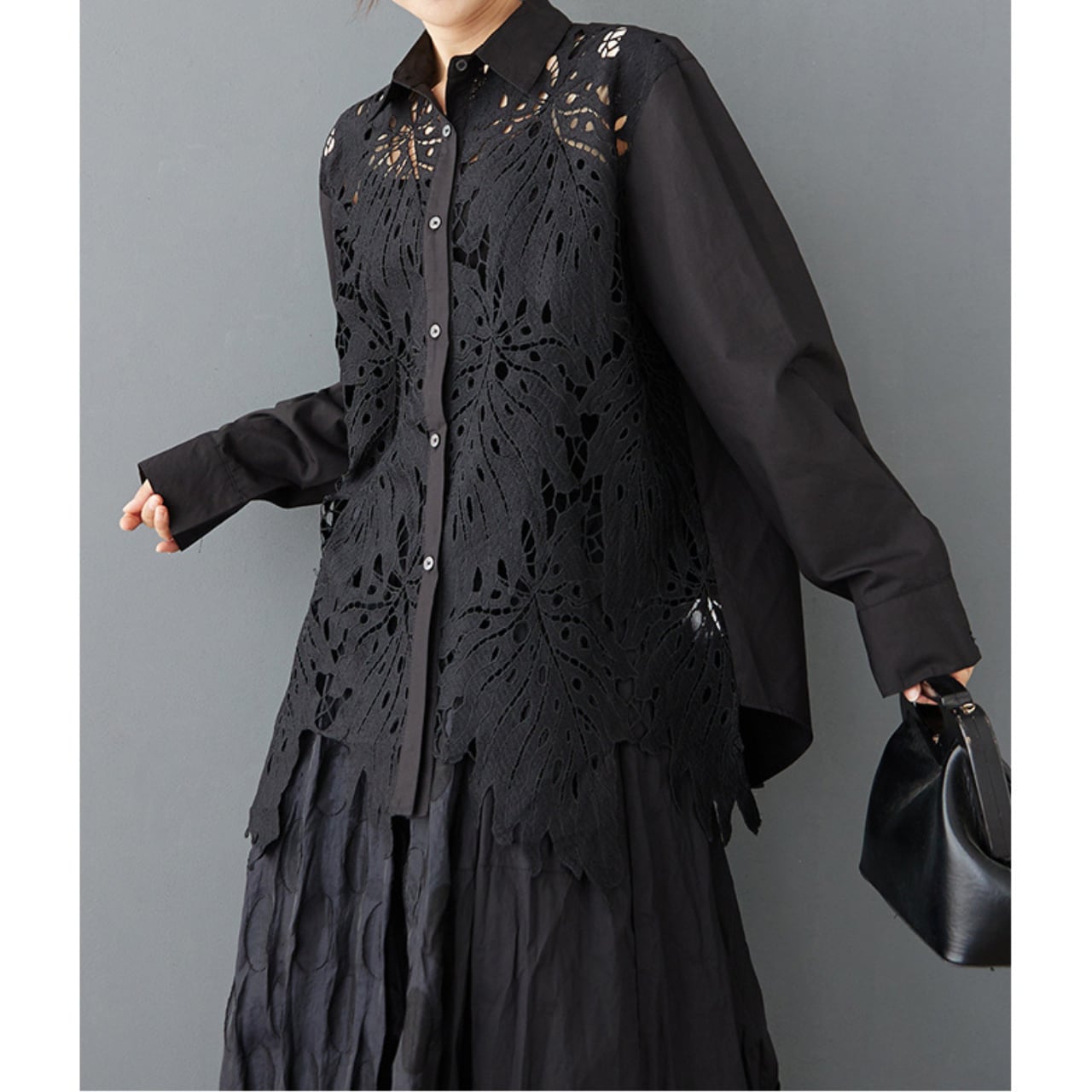 葉っぱのモチーフが美しいロングスリーブシャツ。オーバーサイズのシルエットが、体型をカバーしながらもこなれた印象を与えてくれます。ボタンを上まで留めてきちんと感を演出したり、少し開けて抜け感を出すなど、様々な着こなしが楽しめます。パンツスタイルにもスカートスタイルにも合わせやすく、着回し力も抜群です。