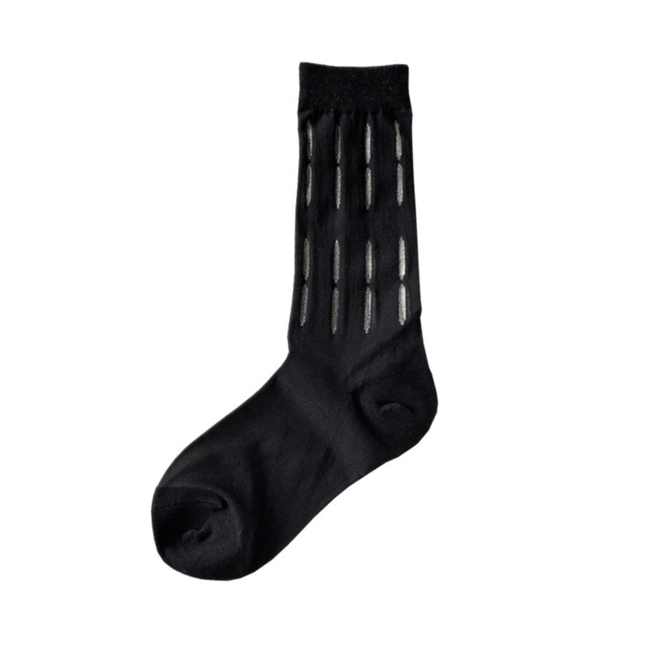 さりげない縦ストライプ柄がポイントのクルー丈ソックス。シンプルなデザインながら、控えめな光沢感が足元を上品に演出します。カジュアルなスタイルにも、きれいめな装いにも合わせやすく、デイリーユースに活躍します。