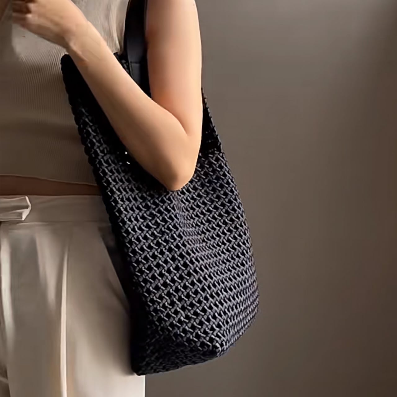 上品で洗練されたデザインのトップハンドルバッグ。編み込まれた独特の素材感が、カジュアルながらも高見えする雰囲気を演出します。普段使いはもちろん、ちょっとしたお出かけにも最適なサイズ感で、どんなスタイルにも合わせやすく、着回し力も抜群です。