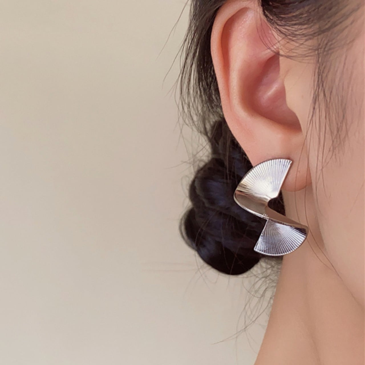 幾何学模様がモダンな印象を与えるピアス。立体的なデザインが洗練された雰囲気を演出します。どんなスタイルにも合わせやすく、デイリーユースから特別な日まで活躍してくれるアイテムです。