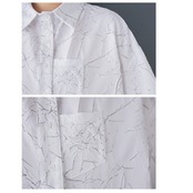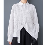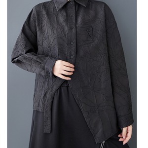 アシンメトリーなデザインが目を惹くロングシャツ。