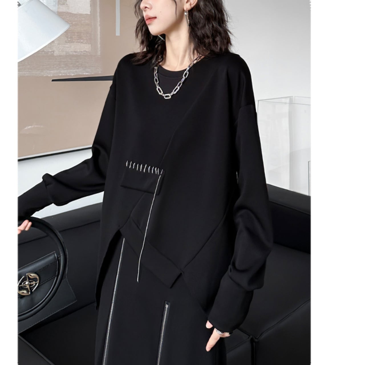 Asymmetrical Sweatshirt Round Neck L00155