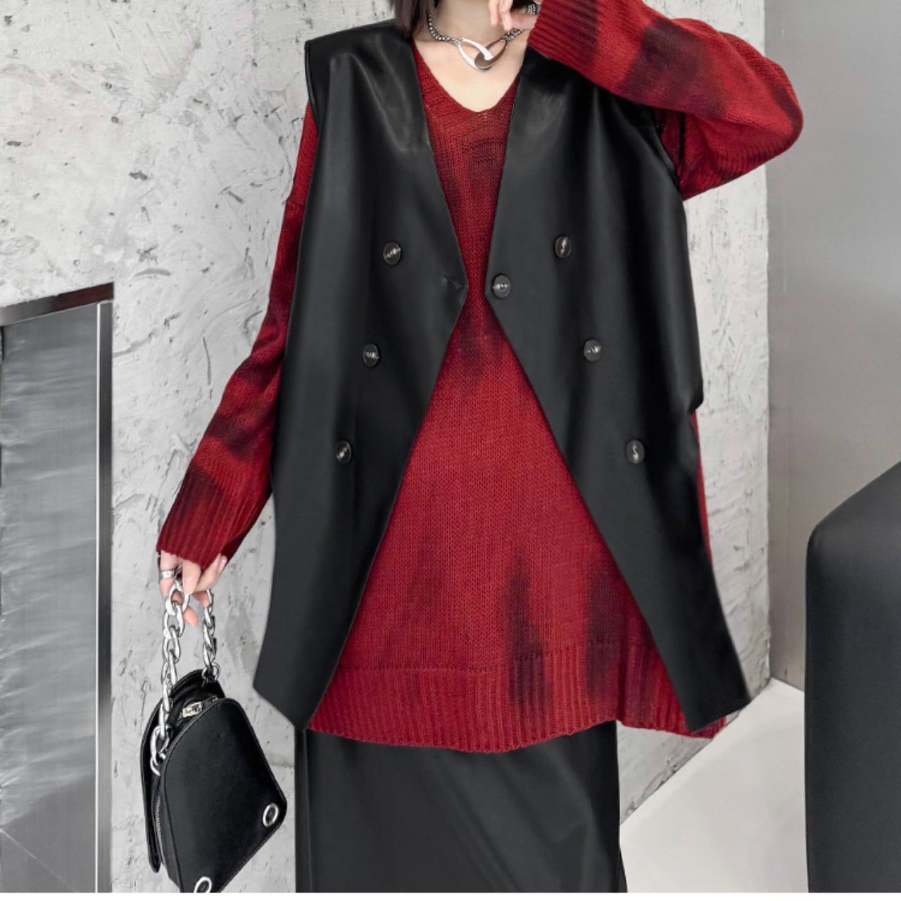 少し短めの丈感が今っぽいフェイクレザージャケットです。ダブルブレストのデザインが、さりげない上品さを演出。カジュアルなスタイルにも、きれいめな装いにも合わせやすく、着回し力抜群です。いつものコーデにプラスするだけで、ぐっとおしゃれ度がアップします。