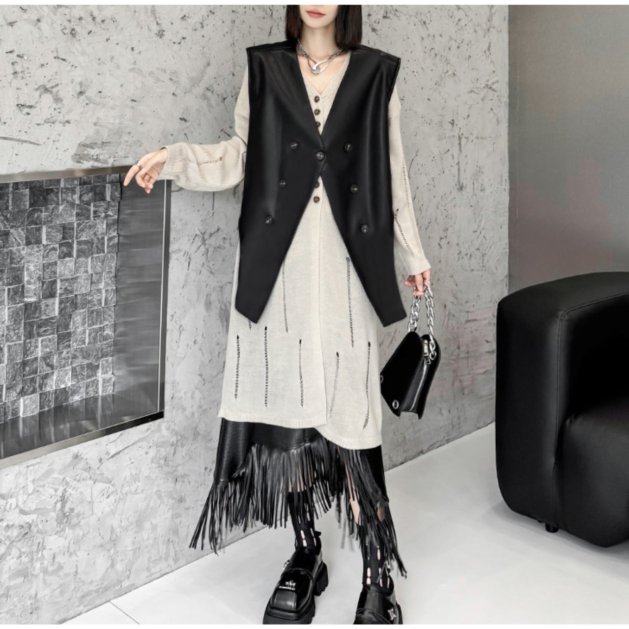Fake Leather Asymmetrical Vest L00160