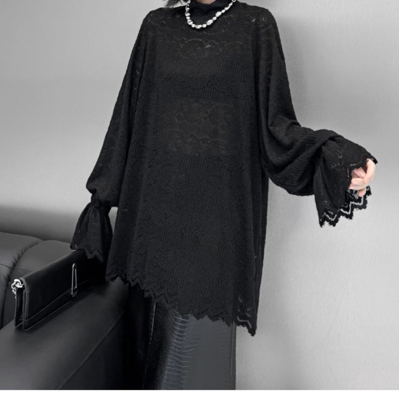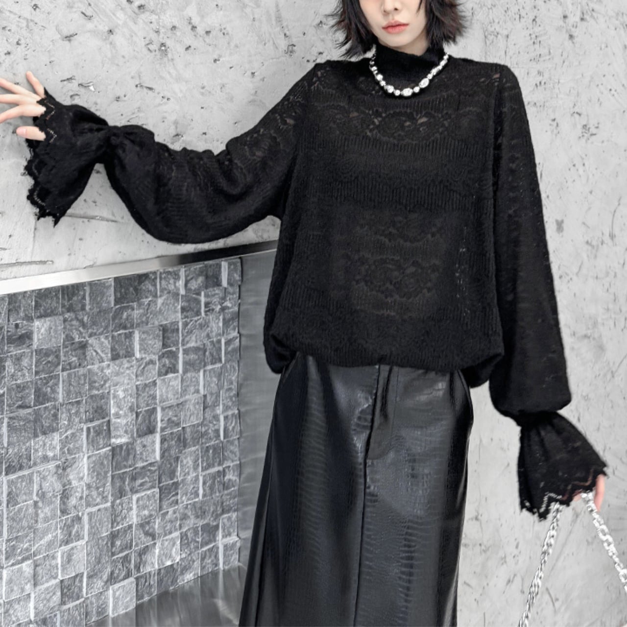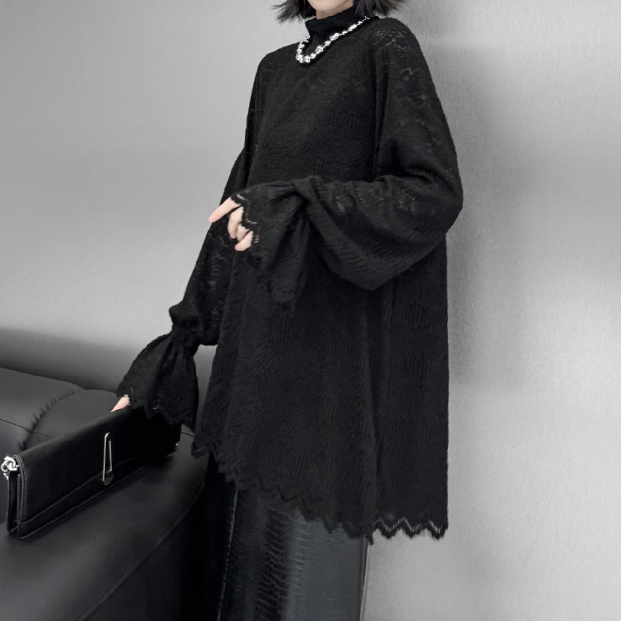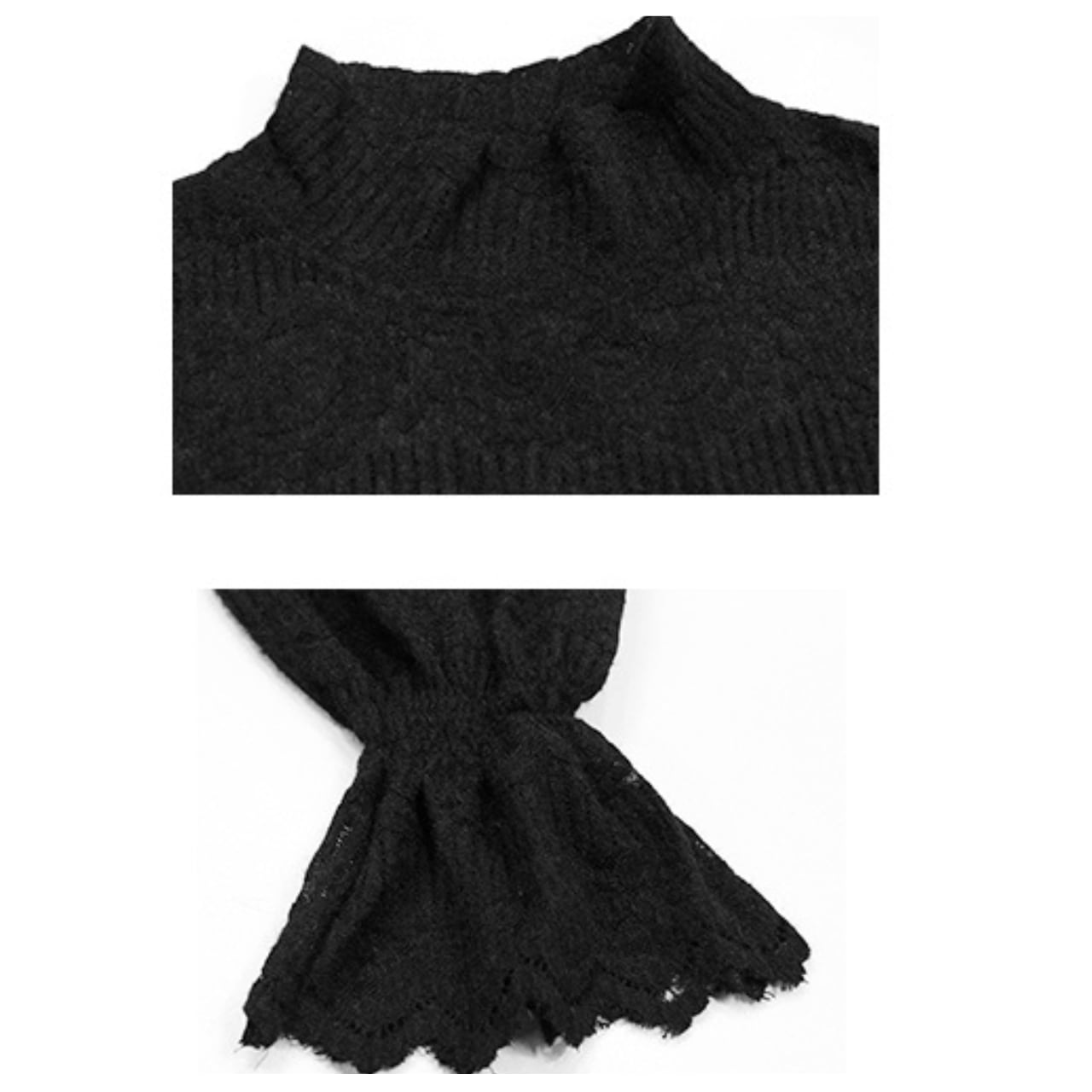 ハイネックとフレアスリーブが織りなす、洗練されたニットトップス。さりげないレース使いが、上品なアクセントを添えます。どんなボトムスにも合わせやすく、着回し力抜群。デイリーユースからオフィススタイルまで、幅広いシーンで活躍します。