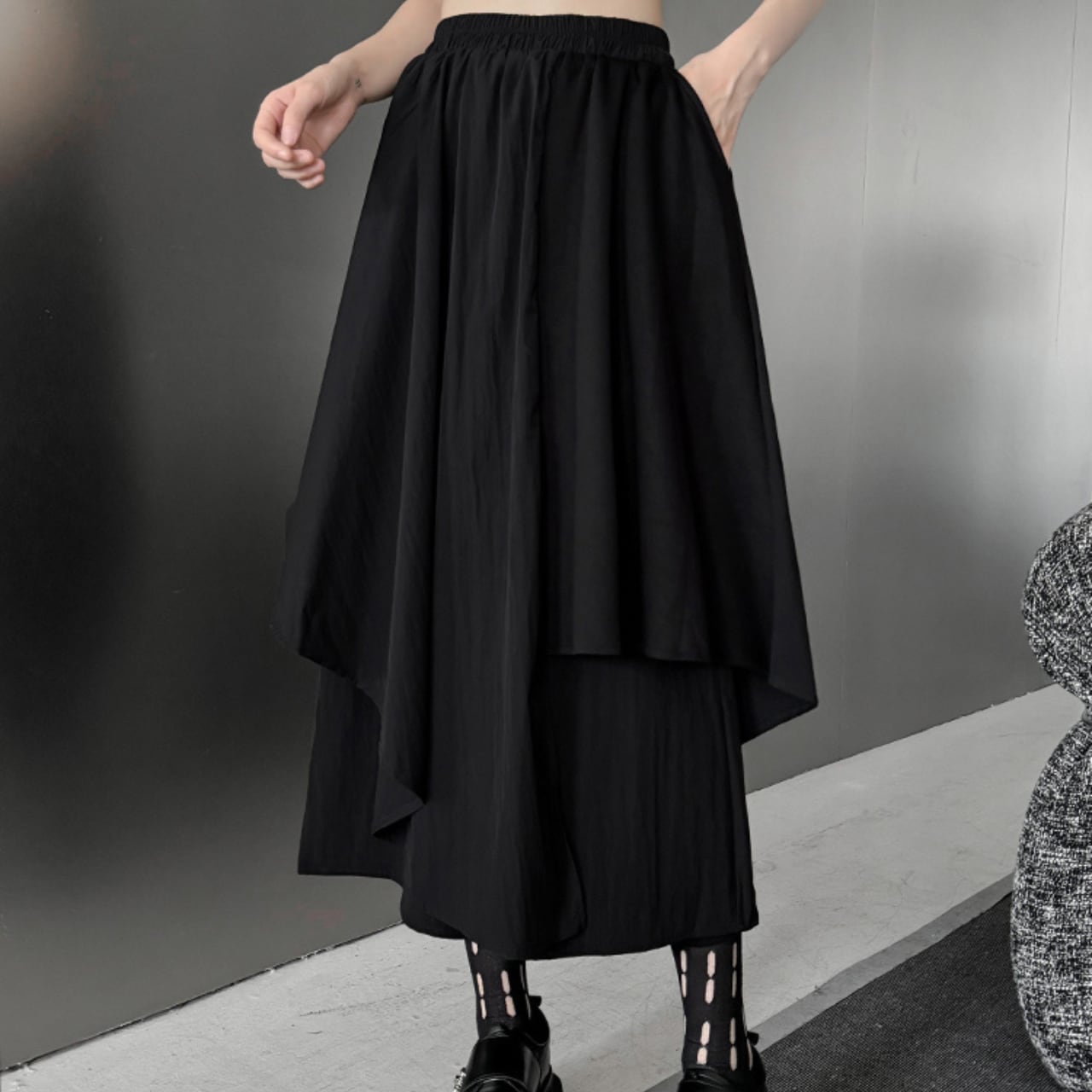 レイヤードデザインが魅力のワイドレッグパンツ。Aラインシルエットが、体型をカバーしながらも洗練された印象を与えます。重ねられた生地がつくる絶妙なドレープが、歩くたびに揺らめき、女性らしい動きを演出します。様々なトップスと合わせやすく、デイリーユースから特別な日の装いまで幅広く活躍する、着回し力の高い1枚です。