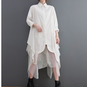 Asymmetrical Hem Button Down Shirt Onepiece L00215