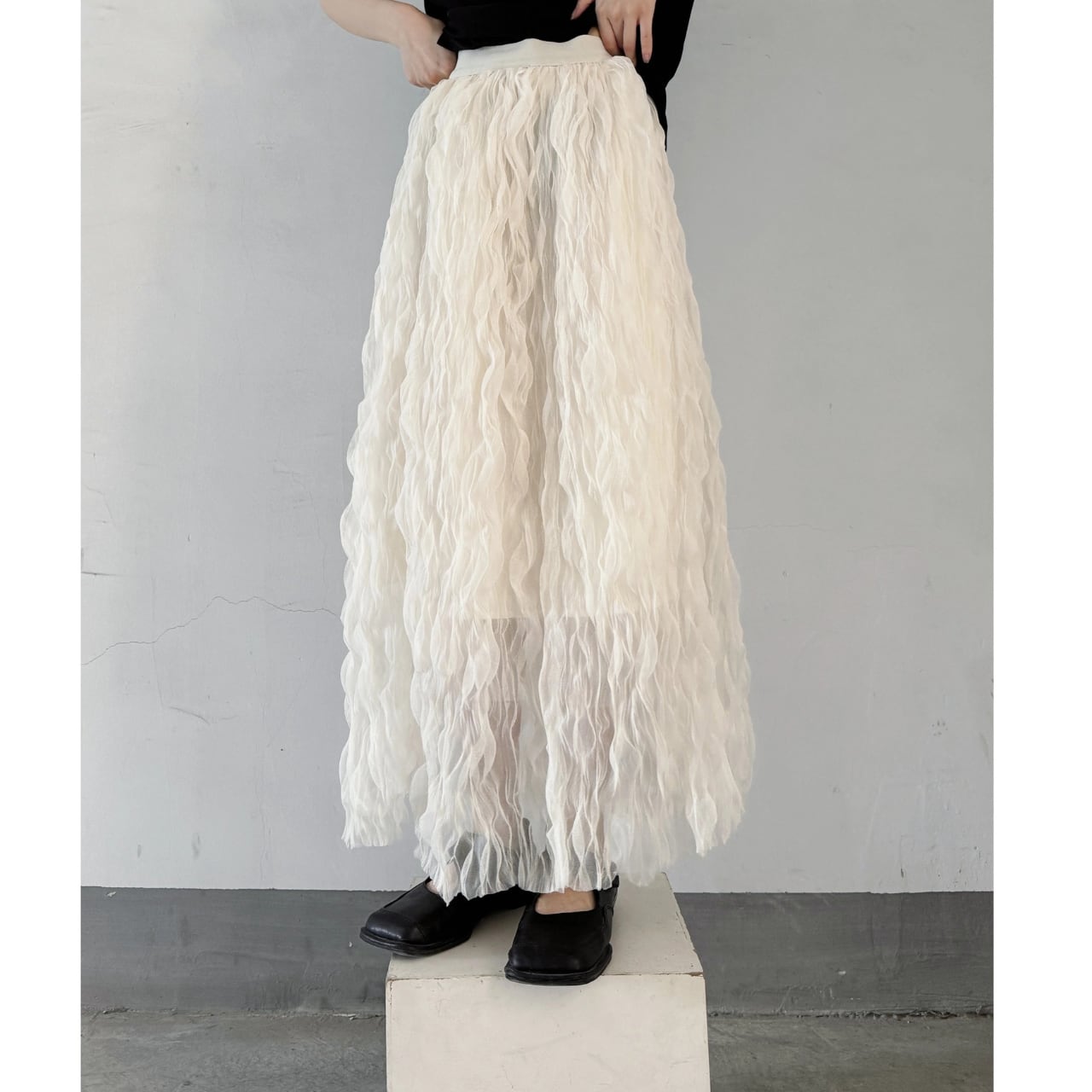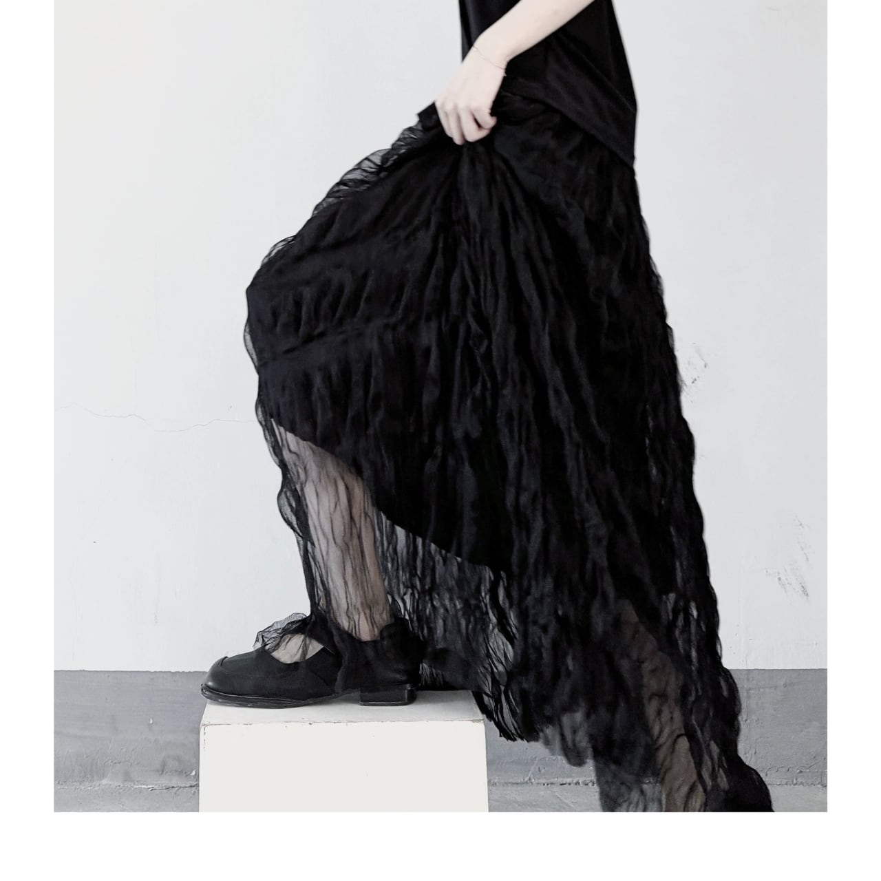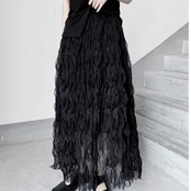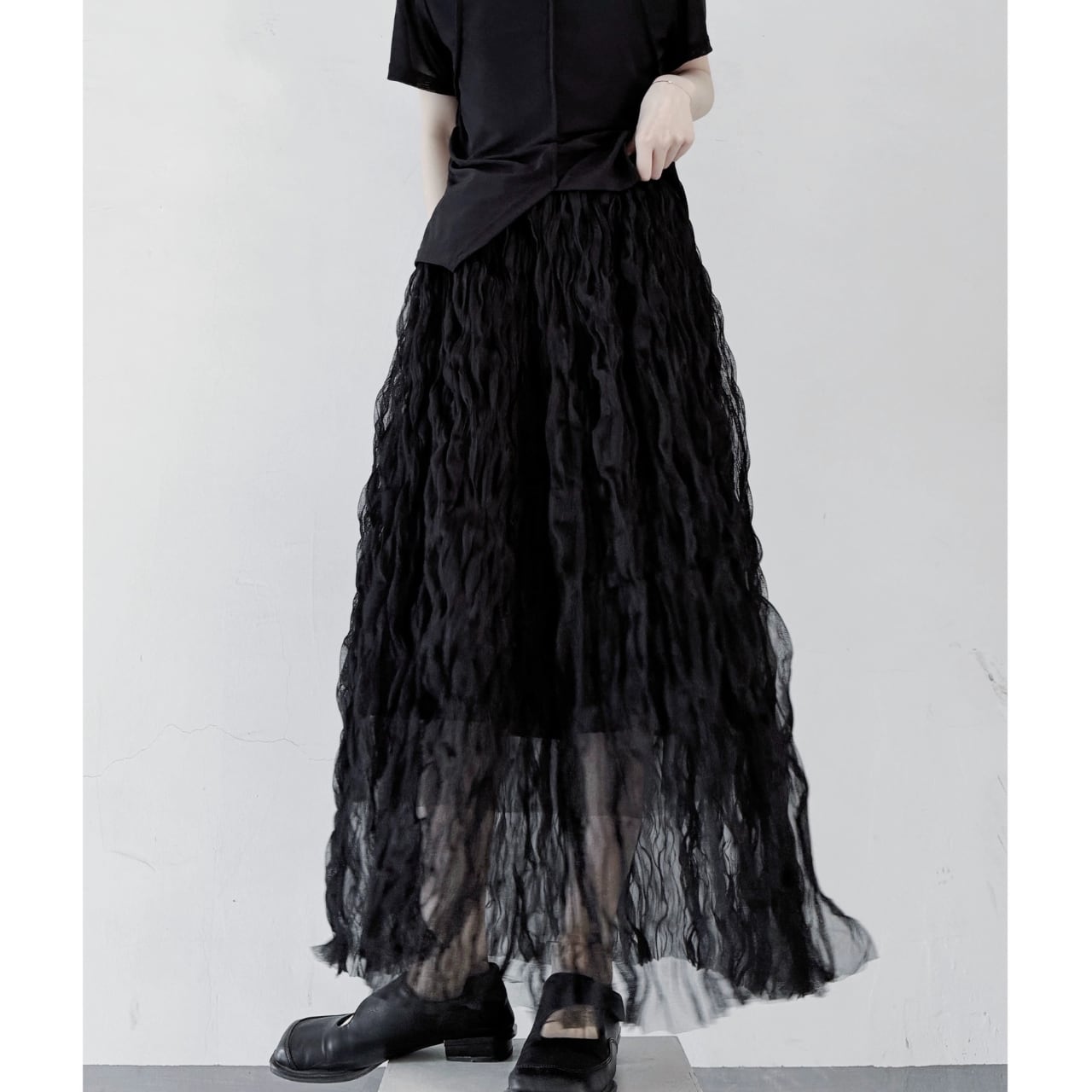 Wrinkled Sheer Flared Maxi long Skirt L00221