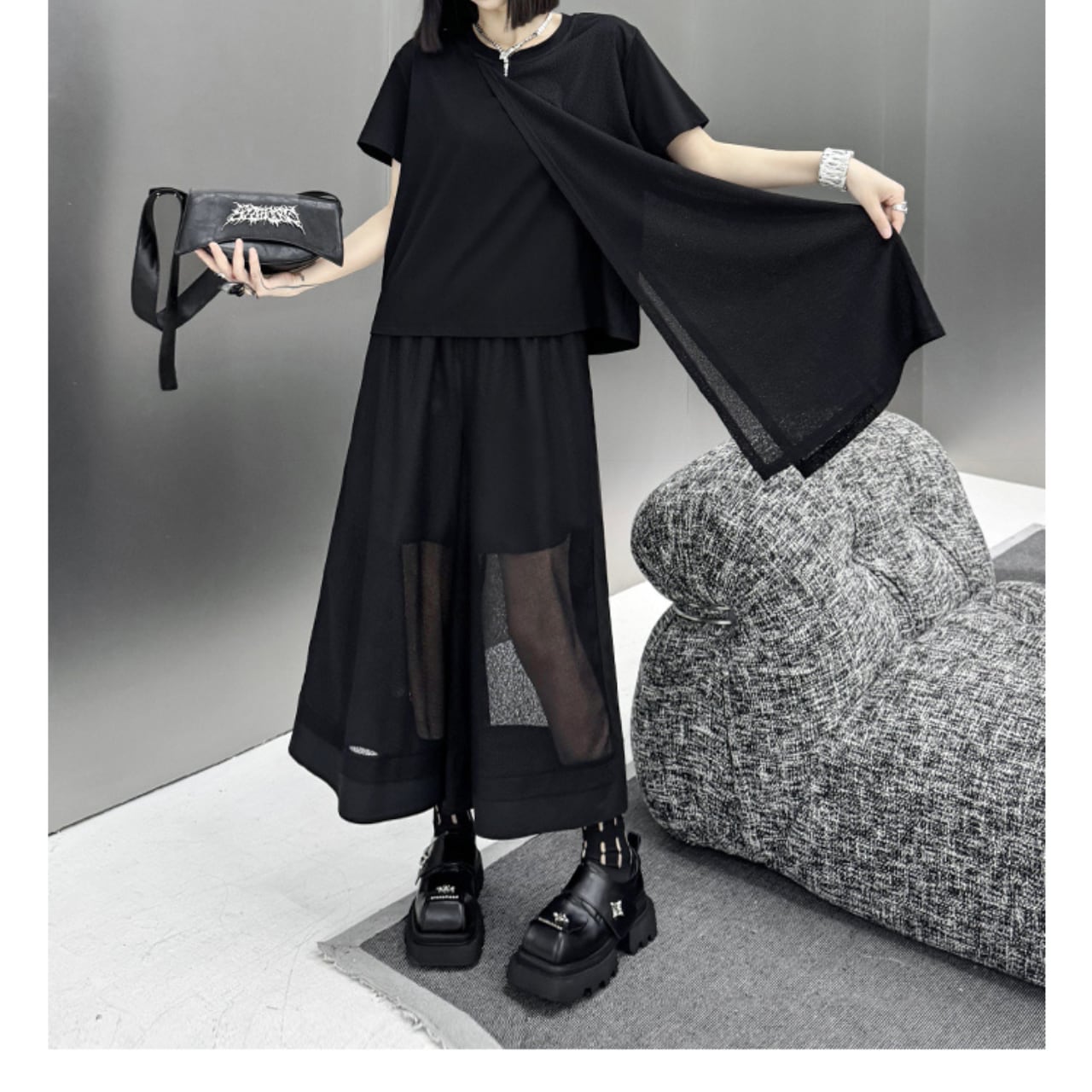 ワイドレッグクロップドパンツで、大人のこなれ感を演出。