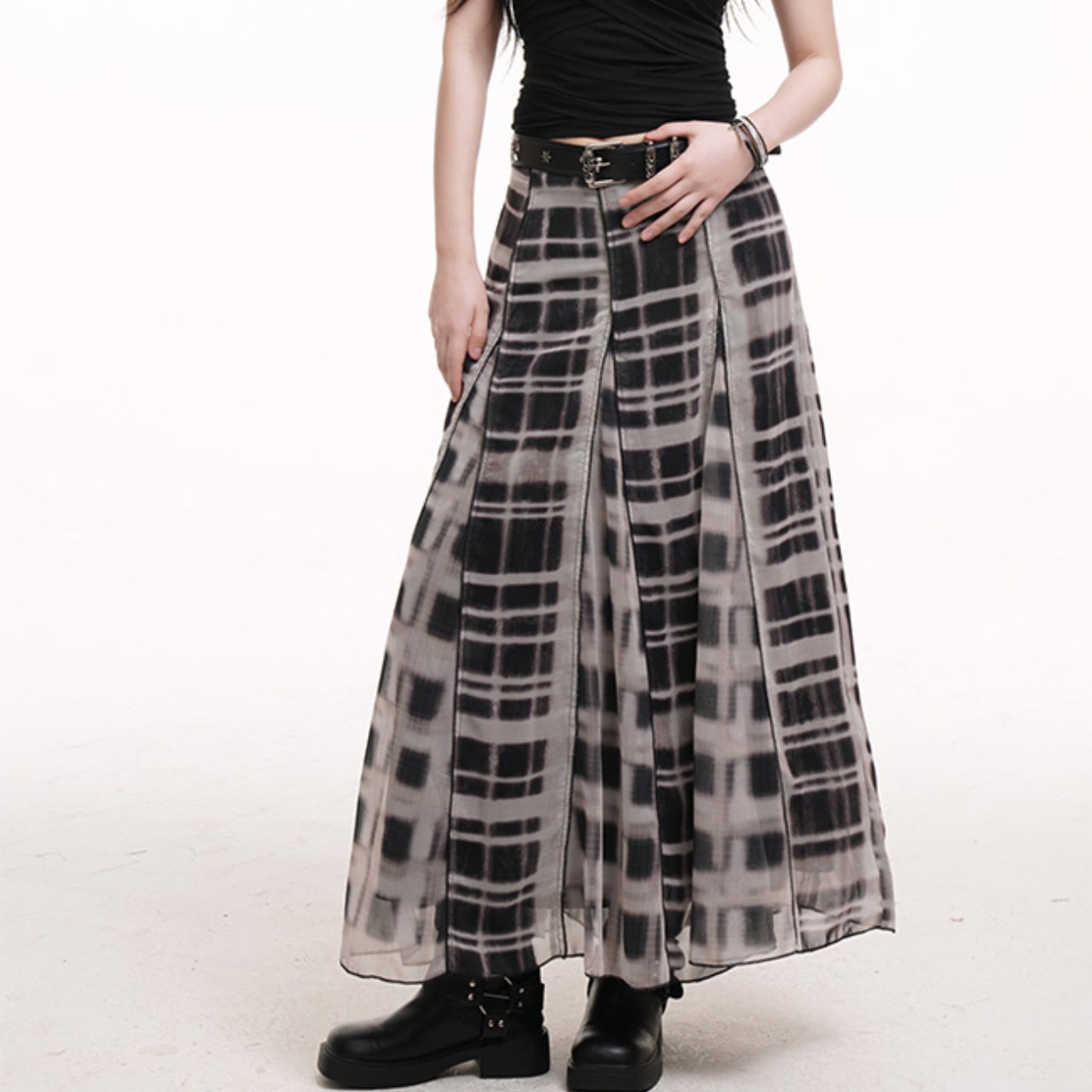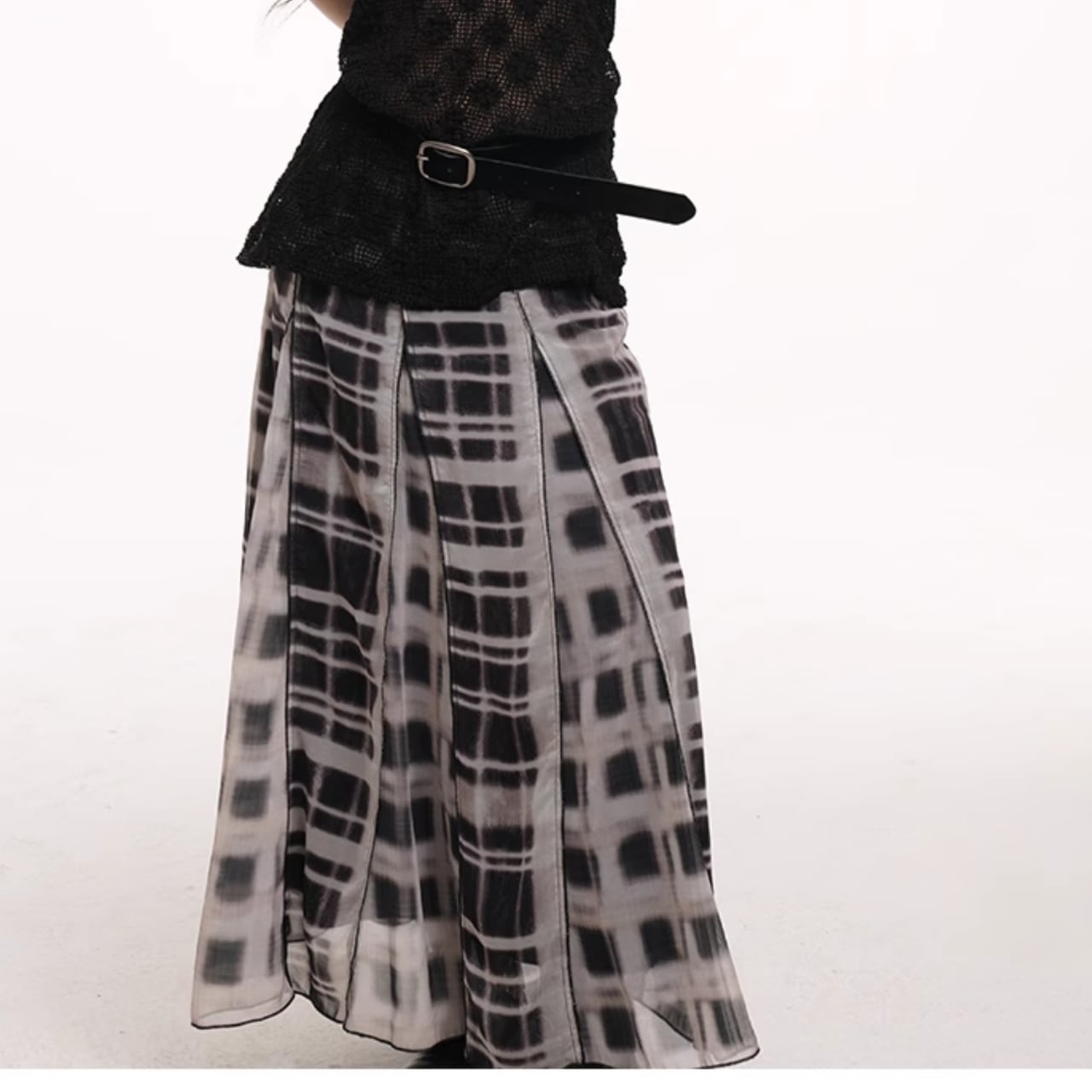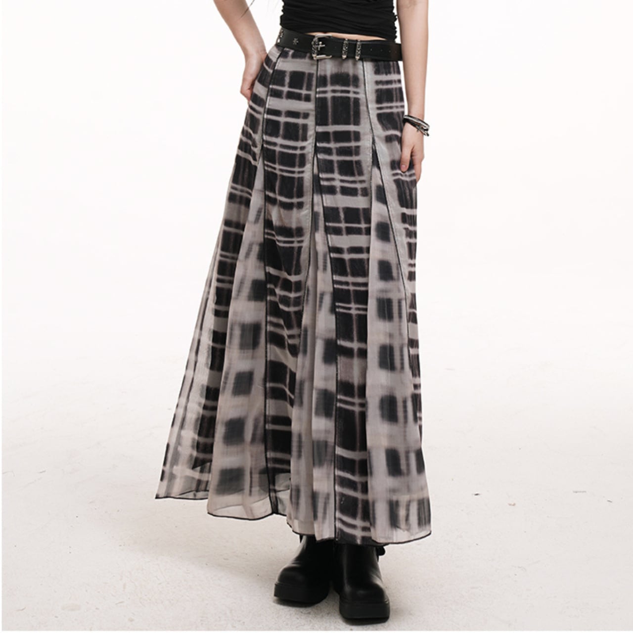 チェック柄が目を惹く、印象的なロングスカート。シアー素材が軽やかで、歩くたびに揺れるシルエットが魅力的です。トップスをインしてもアウトにしてもバランス良く着こなせるので、様々なスタイリングをお楽しみいただけます。通勤にも、お出かけにも、シーンを選ばず活躍する1枚です。