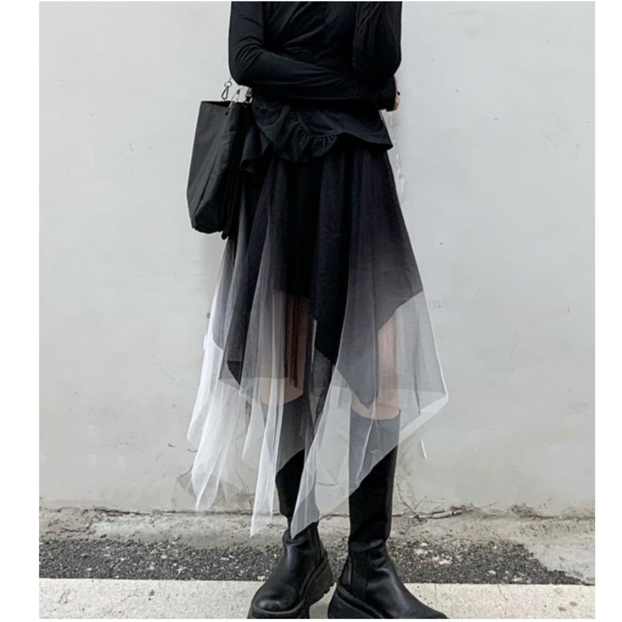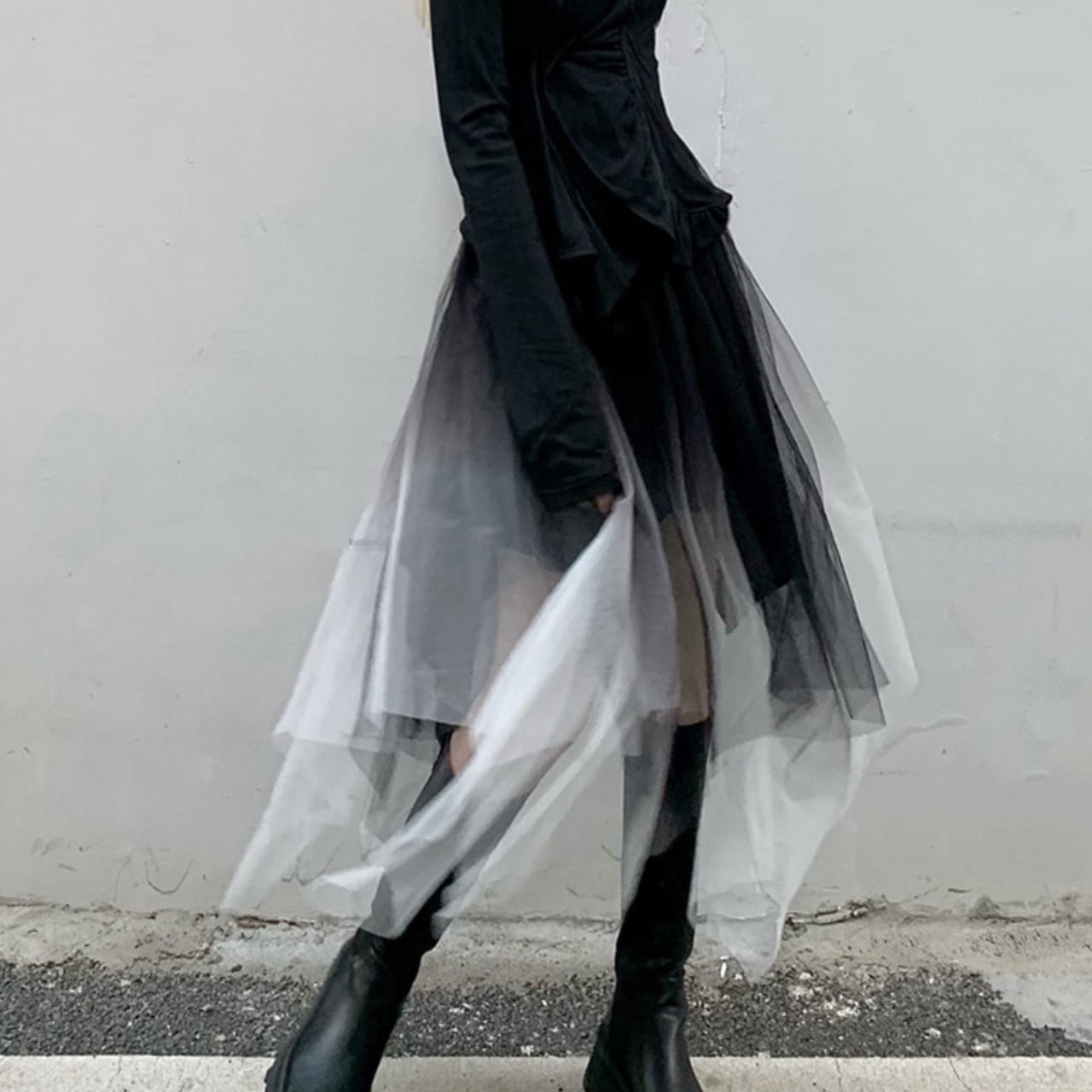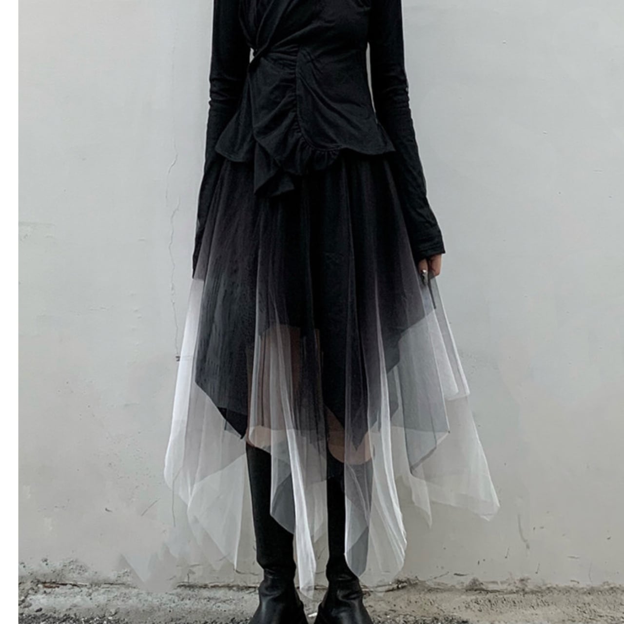 Vネックのラップデザインが洗練されたロングスリーブトップスと、アシンメトリーなチュールレイヤードロングスカートのセットは、一枚でスタイリッシュな装いを完成させます。歩くたびに揺れるチュールの重なりが、女性らしい動きを演出。シンプルなトップスとスカートの組み合わせながら、個性的なデザインが着こなしにスパイスを加えます。普段使いはもちろん、特別な日の装いにもおすすめです。