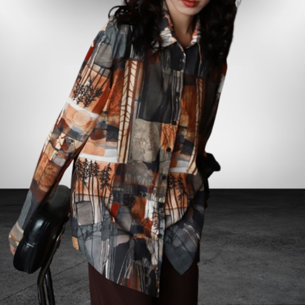 オーバーサイズシルエットが魅力のロングスリーブシャツ。抽象的なパターンが、着こなしにこなれ感をプラスします。ゆったりとした着心地でリラックスできるのに、きちんと感も演出。パンツにもスカートにも合わせやすく、着回し力抜群の一枚です。様々なスタイリングで活躍してくれる、ワードローブに欠かせないアイテムです。