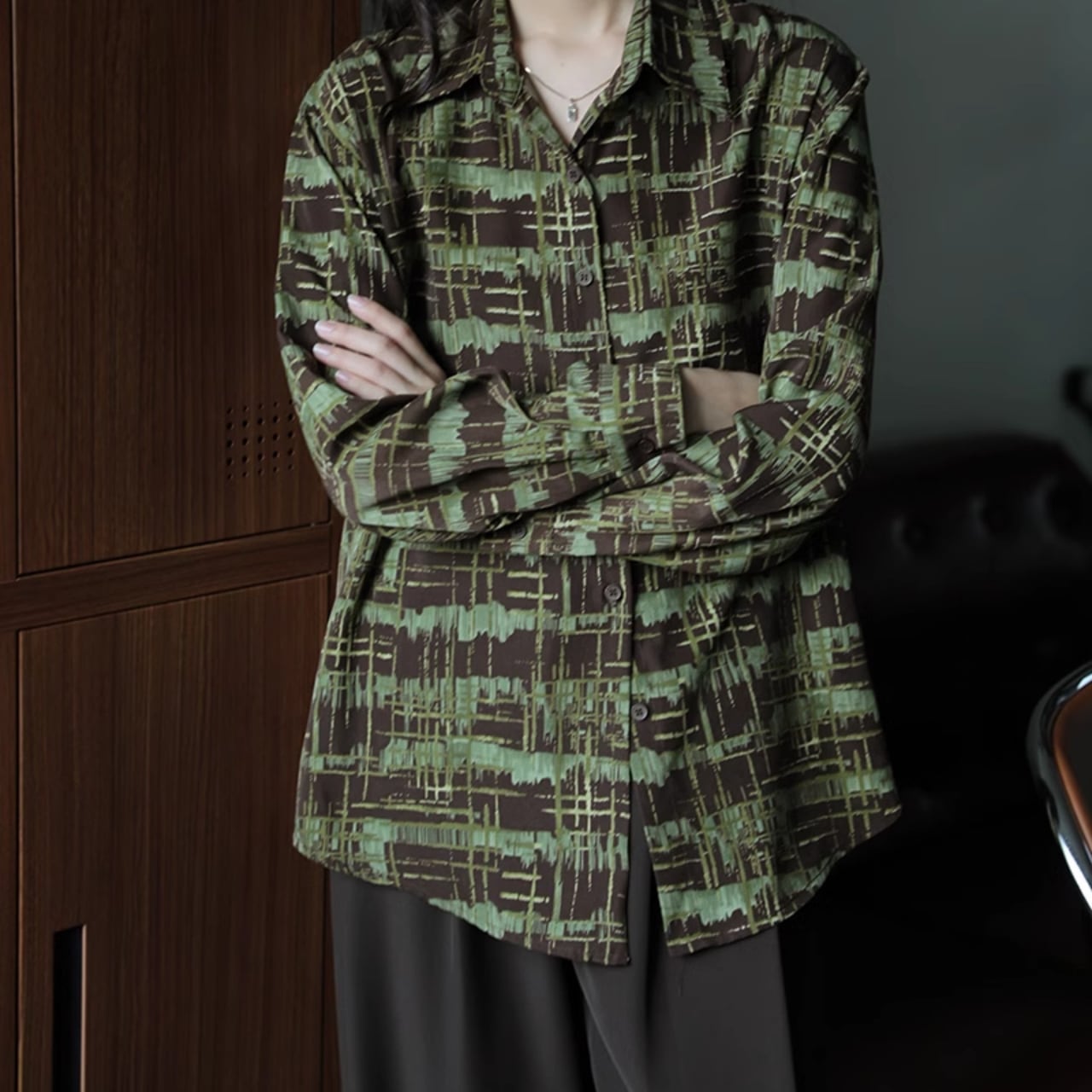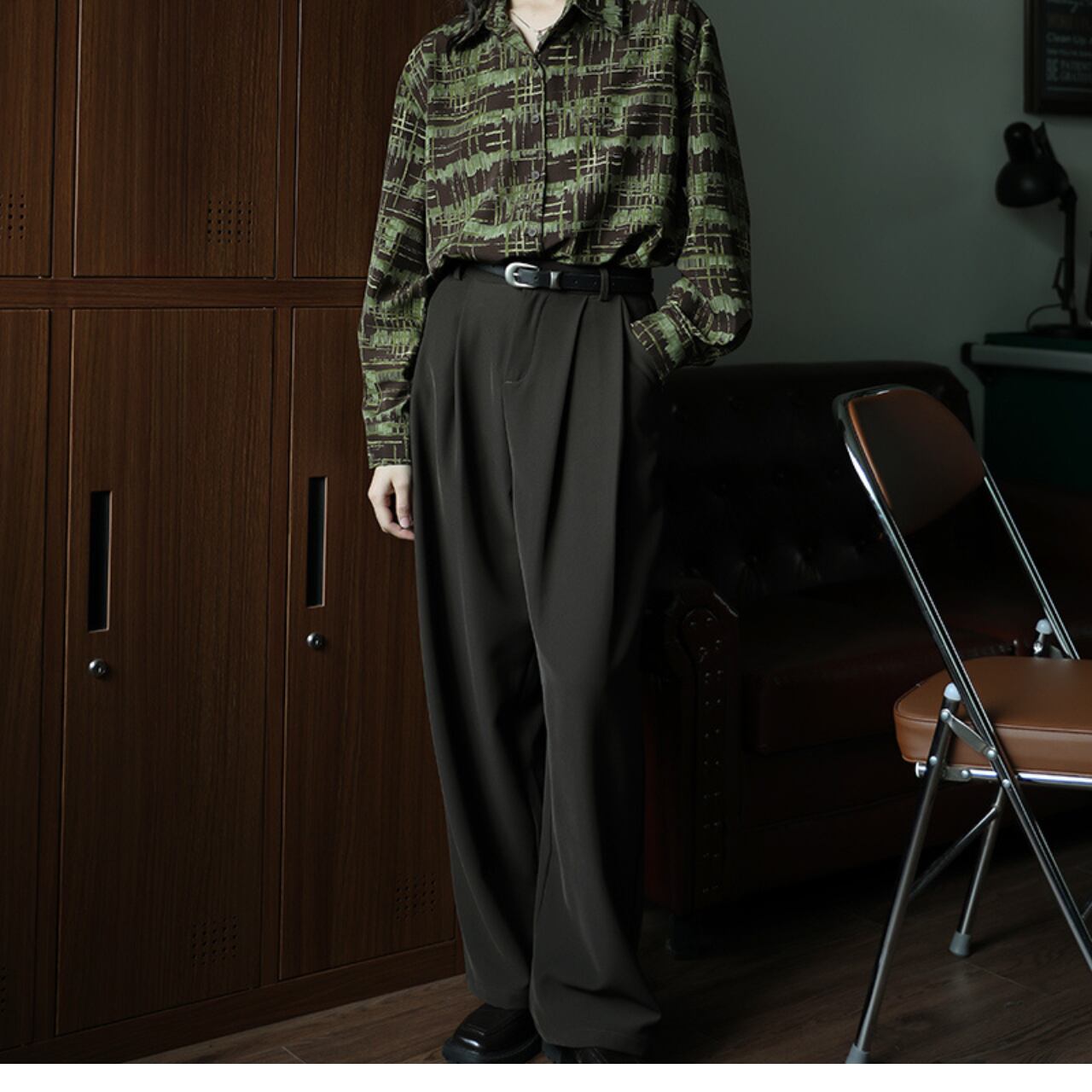 抽象的なパターンが目を引くロングスリーブのボタンダウンシャツと、ハイウエストセンタープレスワイドパンツのセットです。シャツは、スタイリッシュなデザインでありながら、普段使いにも違和感なく着こなせます。パンツは、脚長効果と体型カバーを両立した、着回し力の高いアイテム。オフィスシーンにも、週末のお出かけにも活躍します。セットアップで着ることで、洗練された印象を与え、コーディネートに迷うことなく、おしゃれを楽しめます。