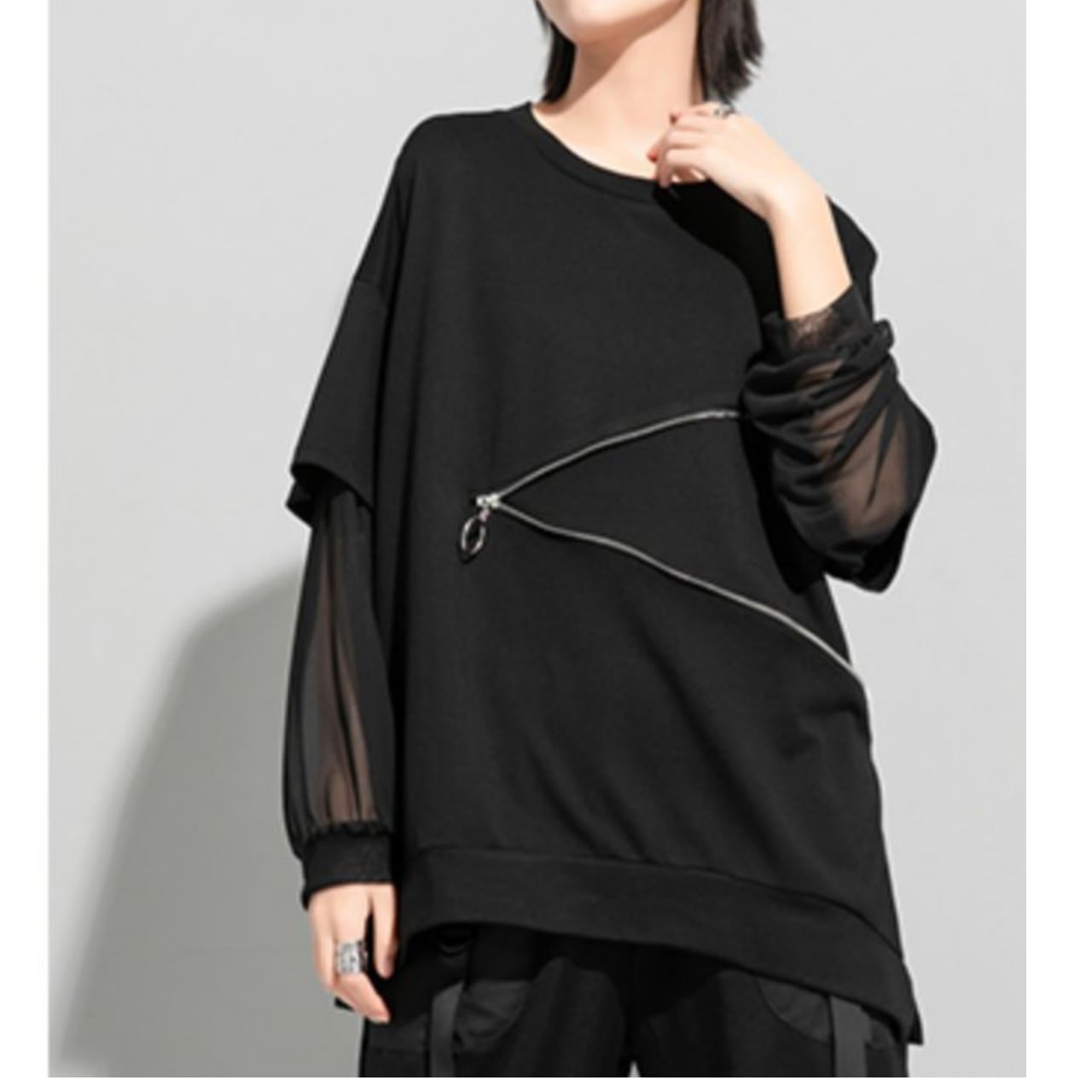 sleeve zip oversized long top L00305