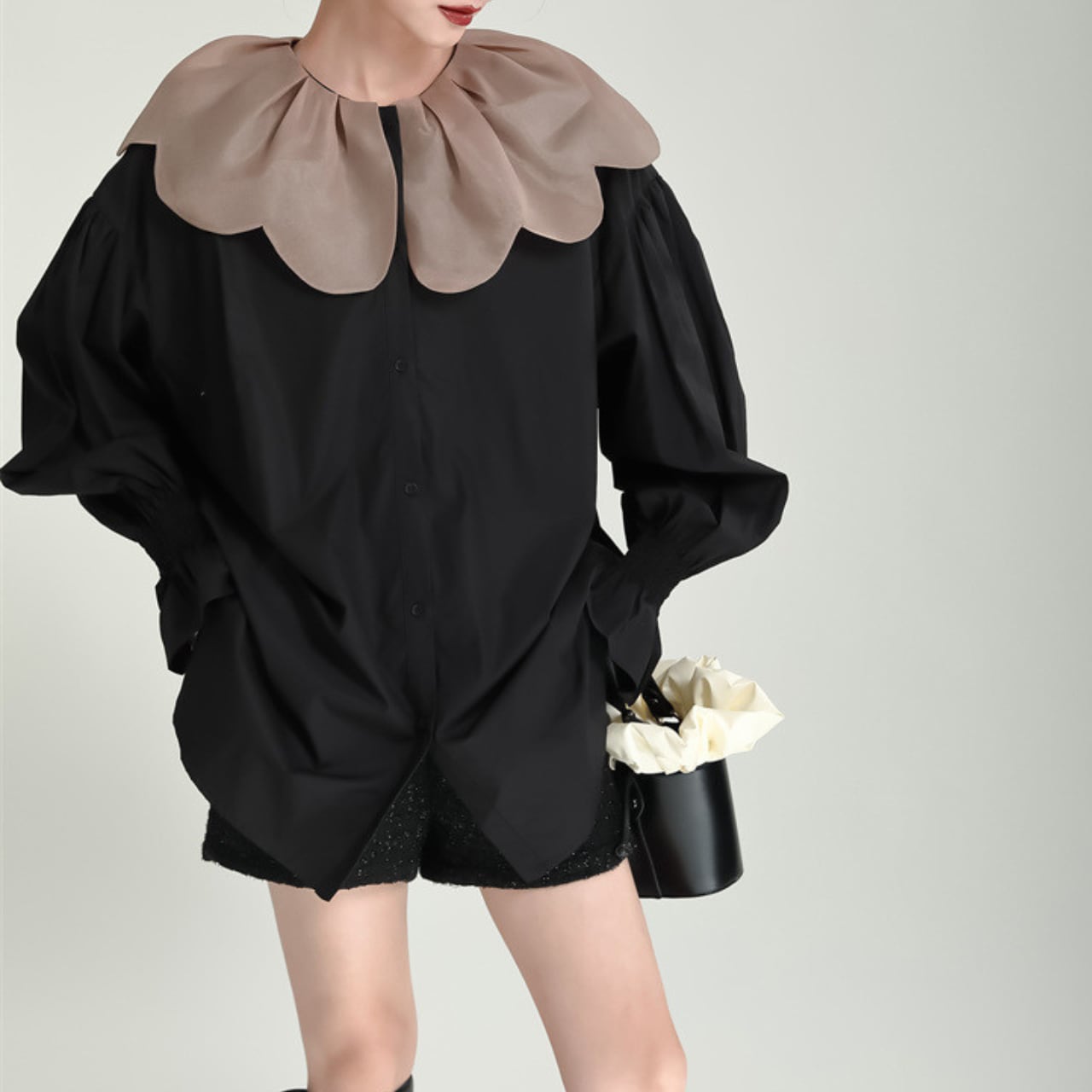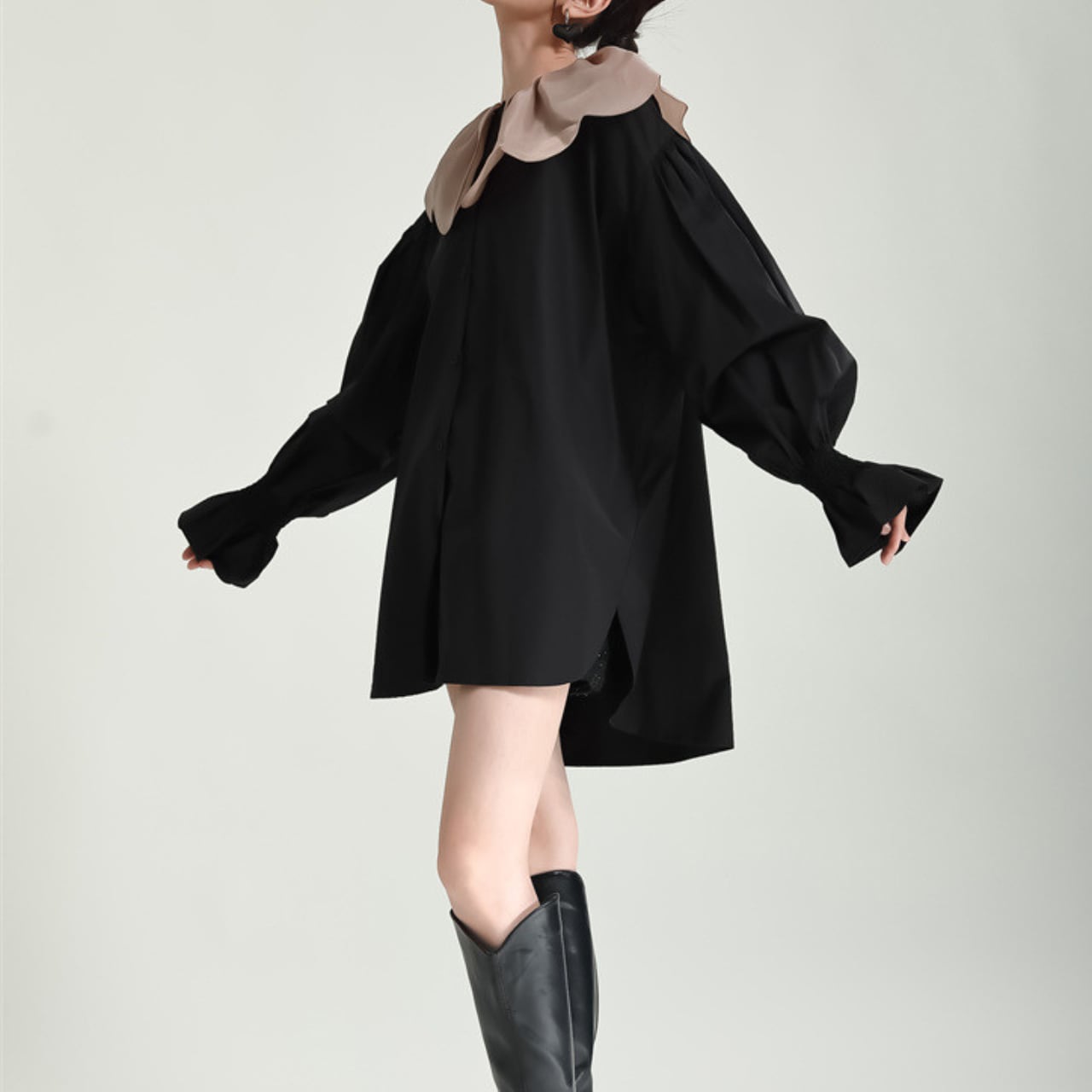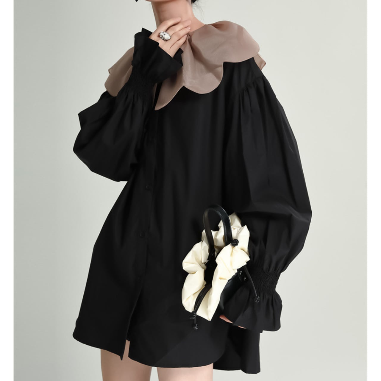 Big Color Balloon Sleeve Shirt Onepiece L00326