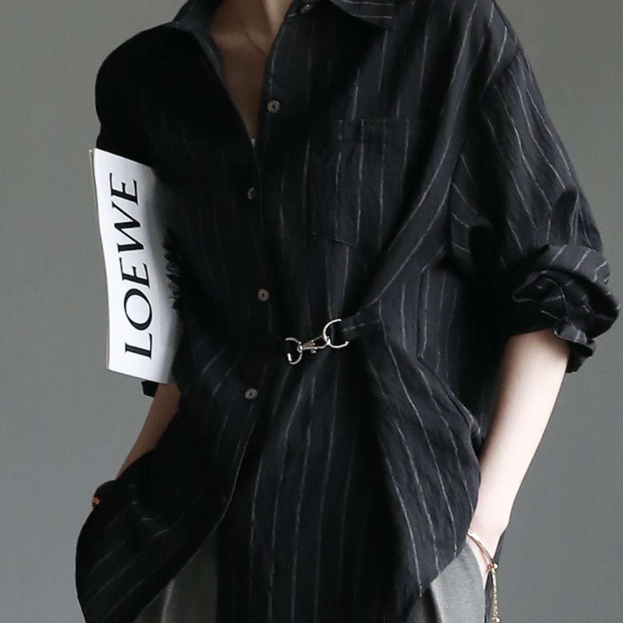さりげなくこなれ感を演出するストライプロングシャツ。ウエストをベルトでマークすることで、スタイルアップ効果も期待できます。パンツスタイルにもスカートスタイルにも合わせやすく、着回し力抜群の一枚です。様々なシーンで活躍してくれる、大人の女性のためのアイテムです。