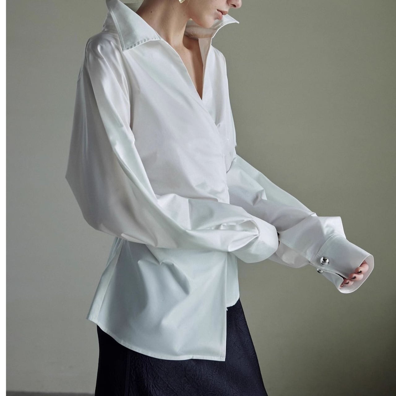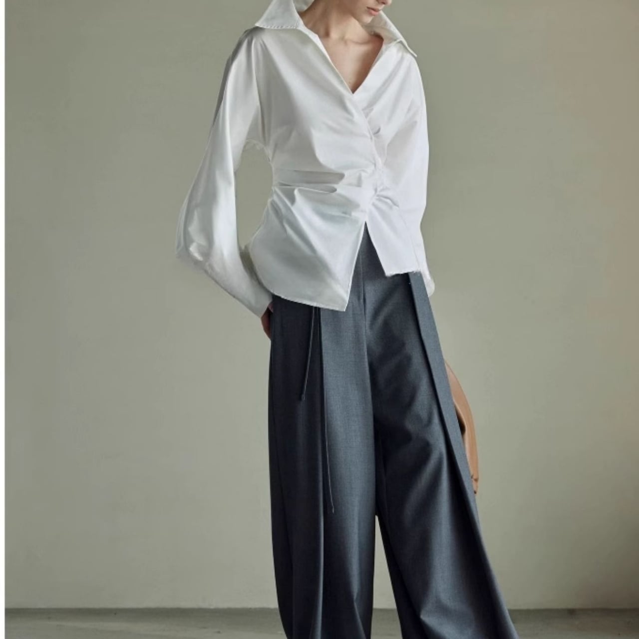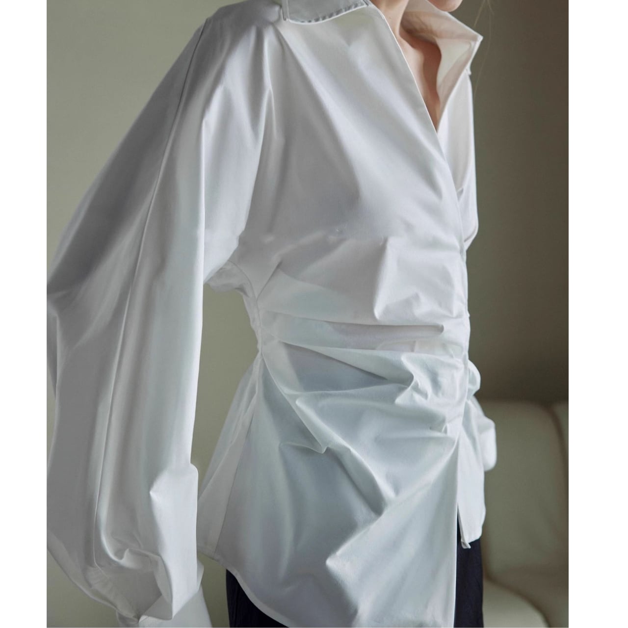 ワイドスリーブが魅力的なブラウスは、気になる部分をさりげなくカバーしながら、きちんと感も演出。ほんのり広がる袖が、かわいらしさと上品さを両立させています。パンツにもスカートにも合わせやすく、着回し力も抜群。普段使いからオフィスシーンまで活躍する、1枚持っておきたいアイテムです。