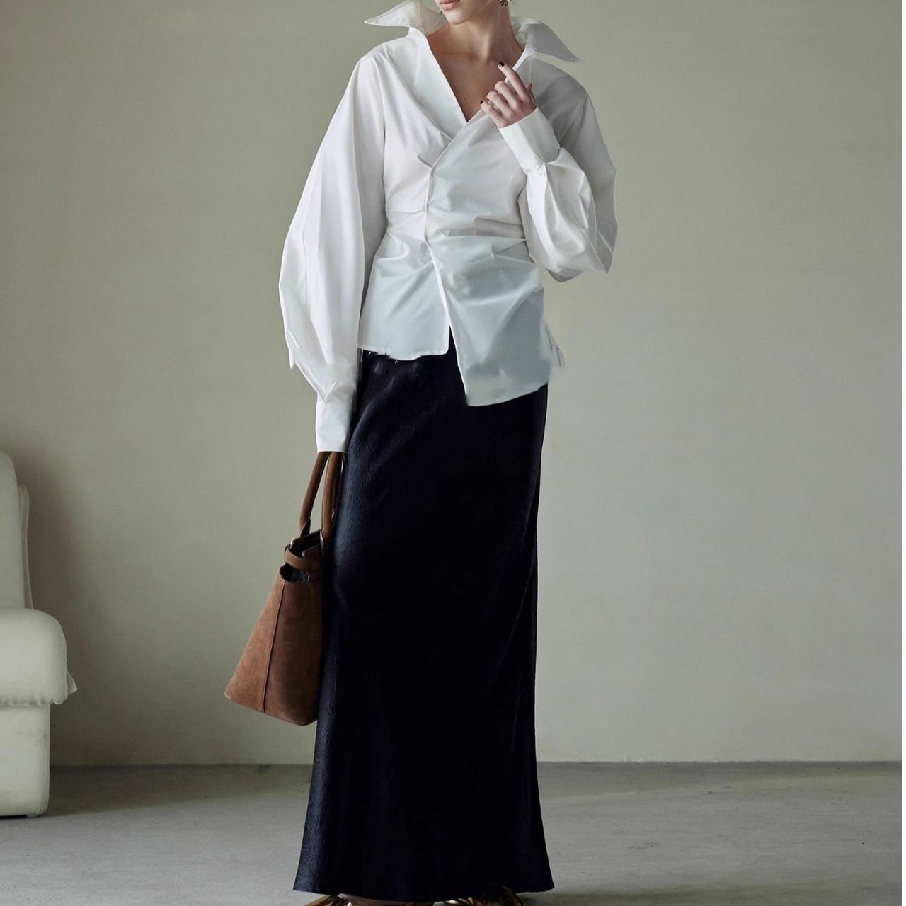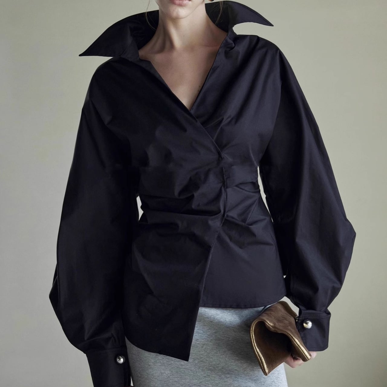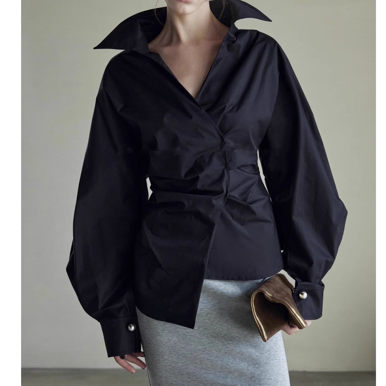 ワイドスリーブが魅力的なブラウスは、気になる部分をさりげなくカバーしながら、きちんと感も演出。ほんのり広がる袖が、かわいらしさと上品さを両立させています。パンツにもスカートにも合わせやすく、着回し力も抜群。普段使いからオフィスシーンまで活躍する、1枚持っておきたいアイテムです。