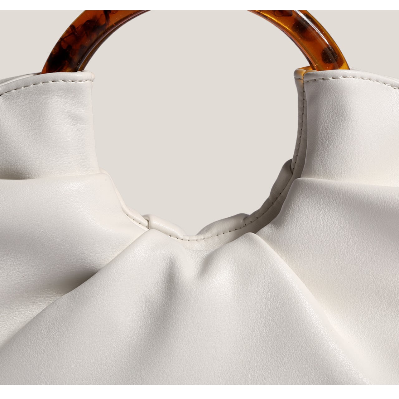 上品な佇まいと、使いやすさを両立したバッグ。ふっくらとしたシルエットが、女性らしい雰囲気を演出します。