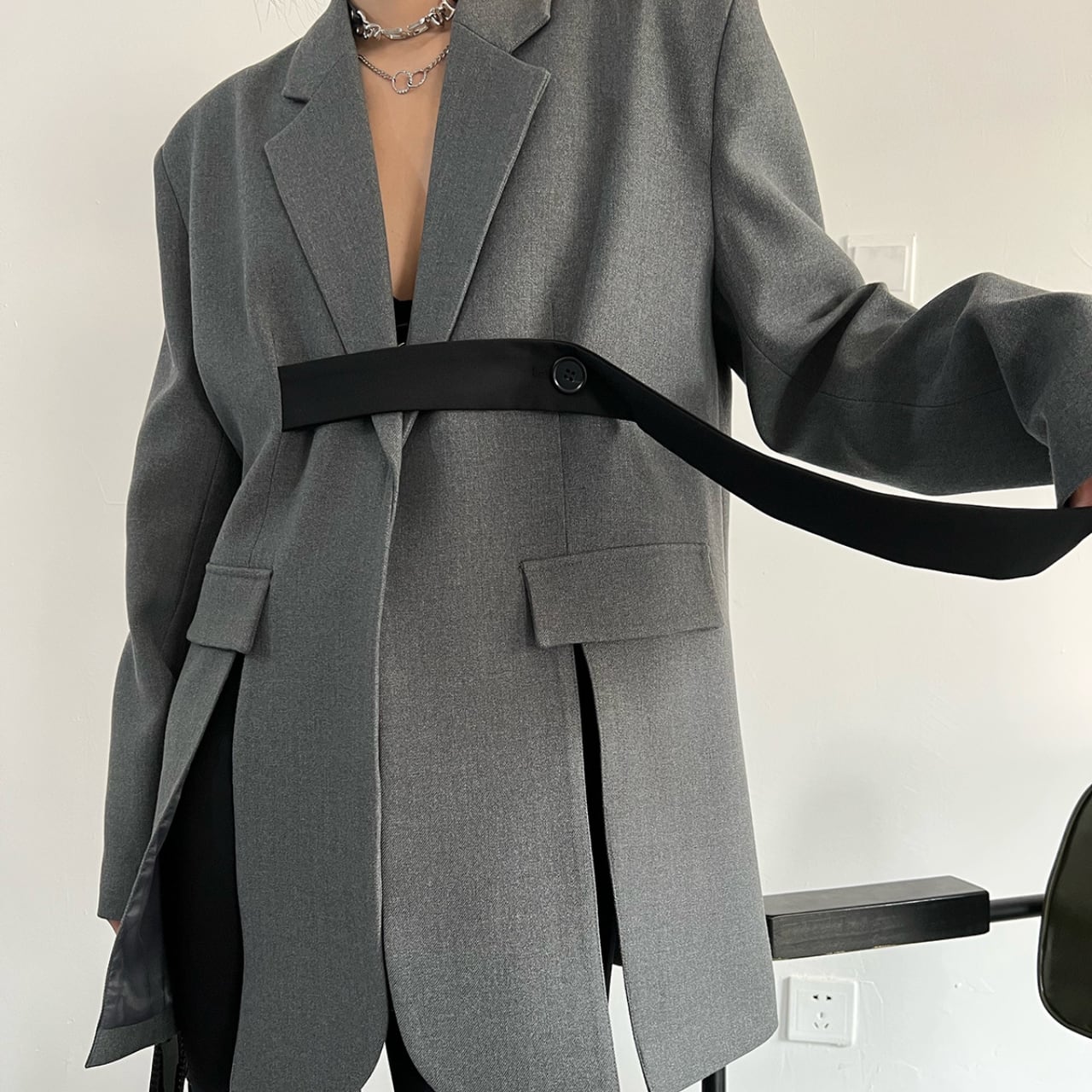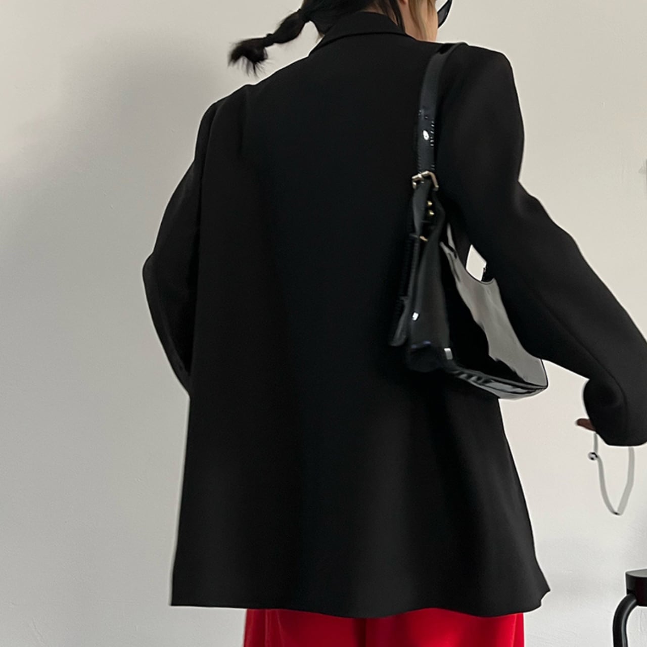 オーバーサイズシルエットが魅力のテーラードジャケット。気になる体型をさりげなくカバーしながら、きちんと感を演出します。程よくゆとりのあるデザインで、リラックスした着心地ながらも、洗練された印象を与えます。パンツスタイルにもスカートスタイルにも合わせやすく、着回し力も抜群。デイリーユースからオフィスシーンまで、幅広い場面で活躍する1枚です。