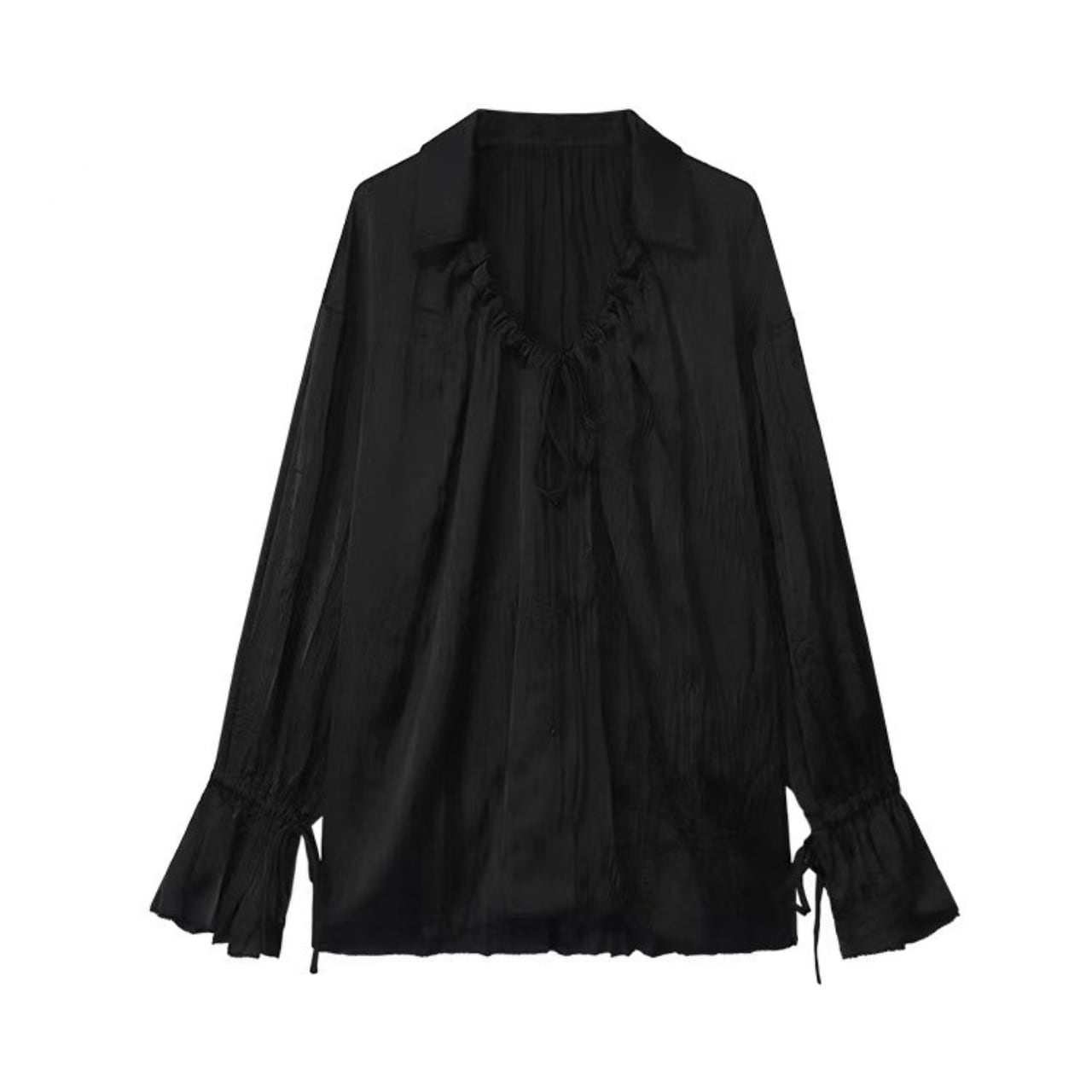 フロントの紐でシルエットの変化も楽しめます。様々なボトムスと合わせやすく、着回し力も抜群です。