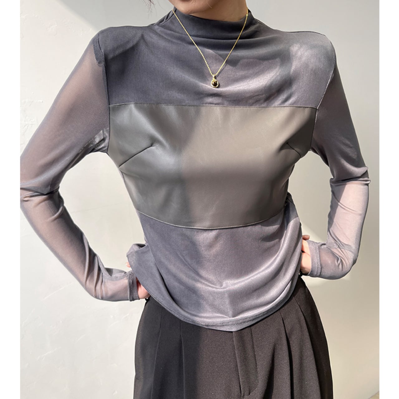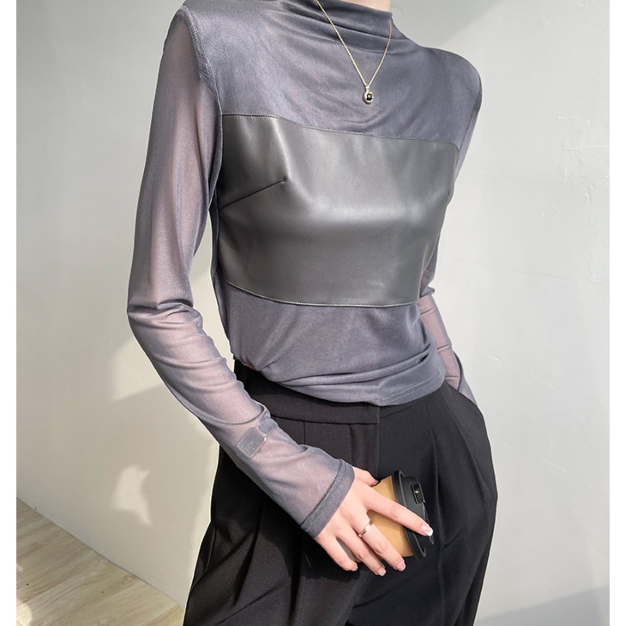 シースルー素材とマットな質感の異素材MIXが洗練されたトップス。