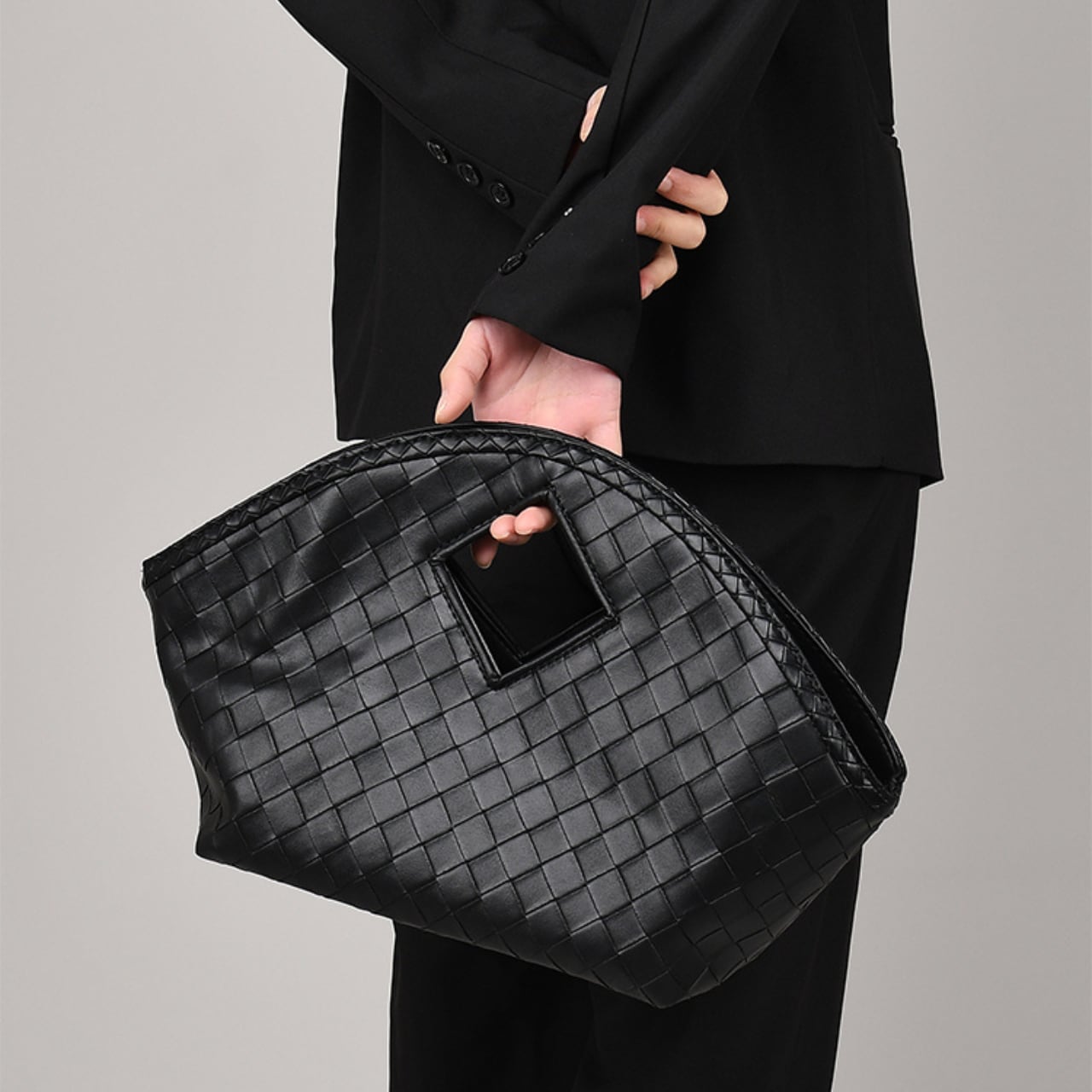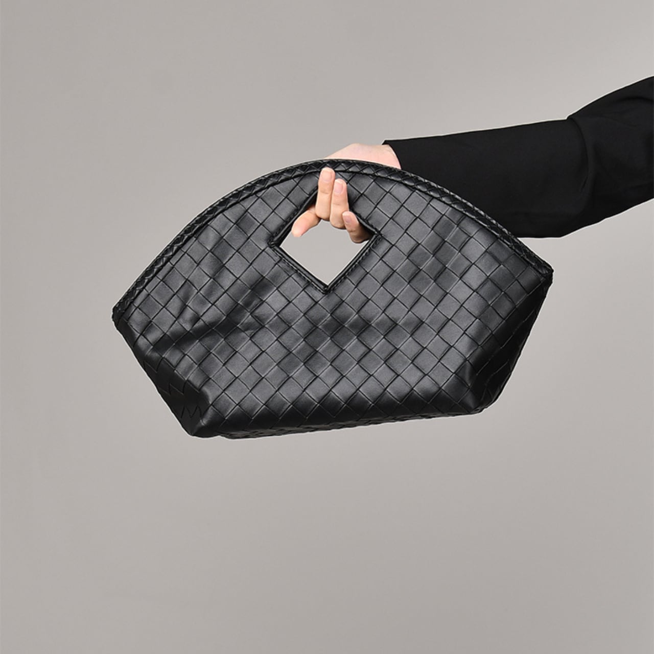 洗練されたイントレチャートデザインが魅力のハーフムーンハンドバッグ。上品なフォルムと程よいサイズ感が、どんなスタイルにも自然と溶け込みます。
