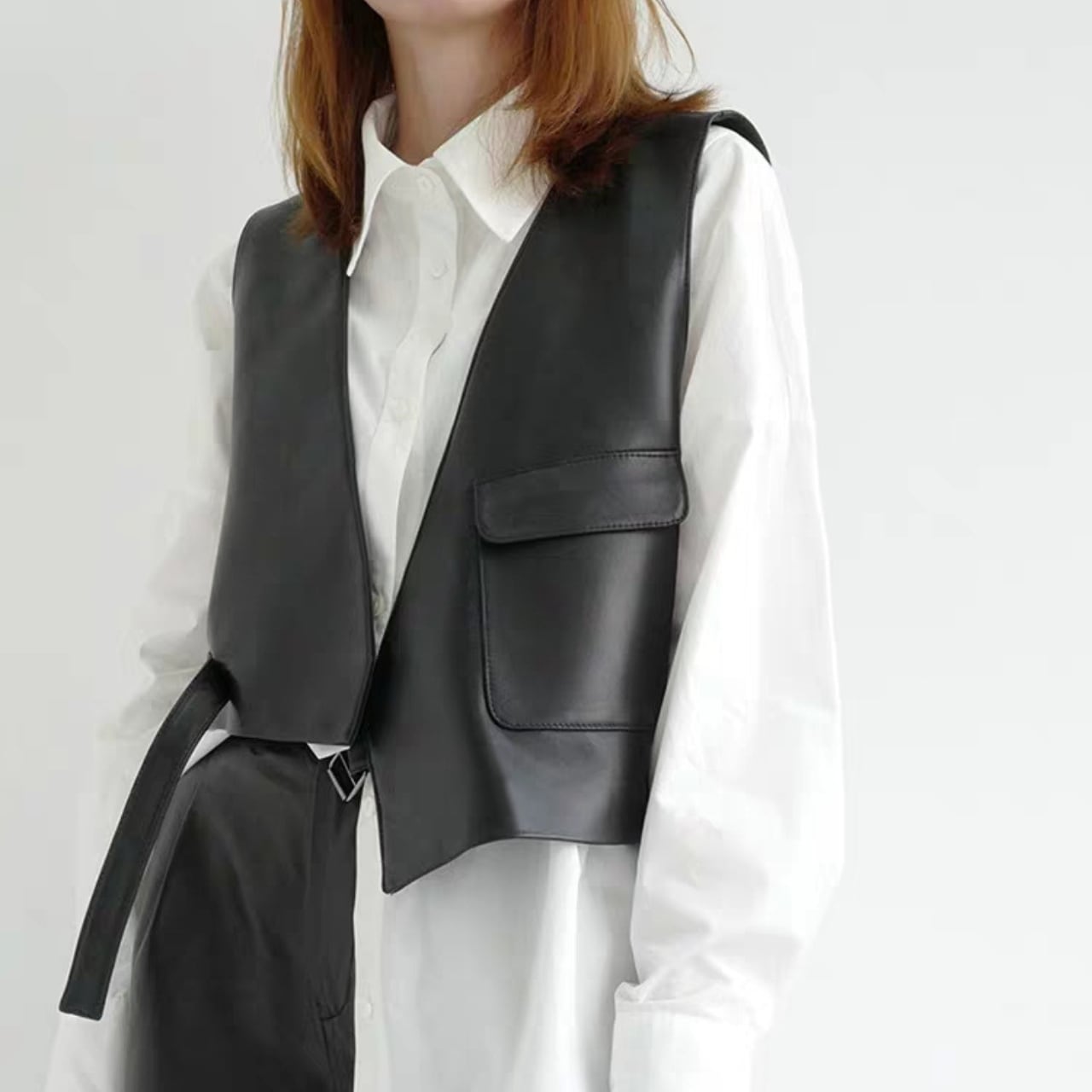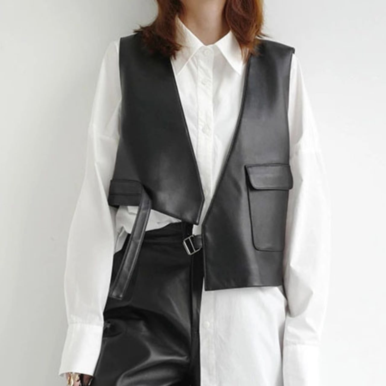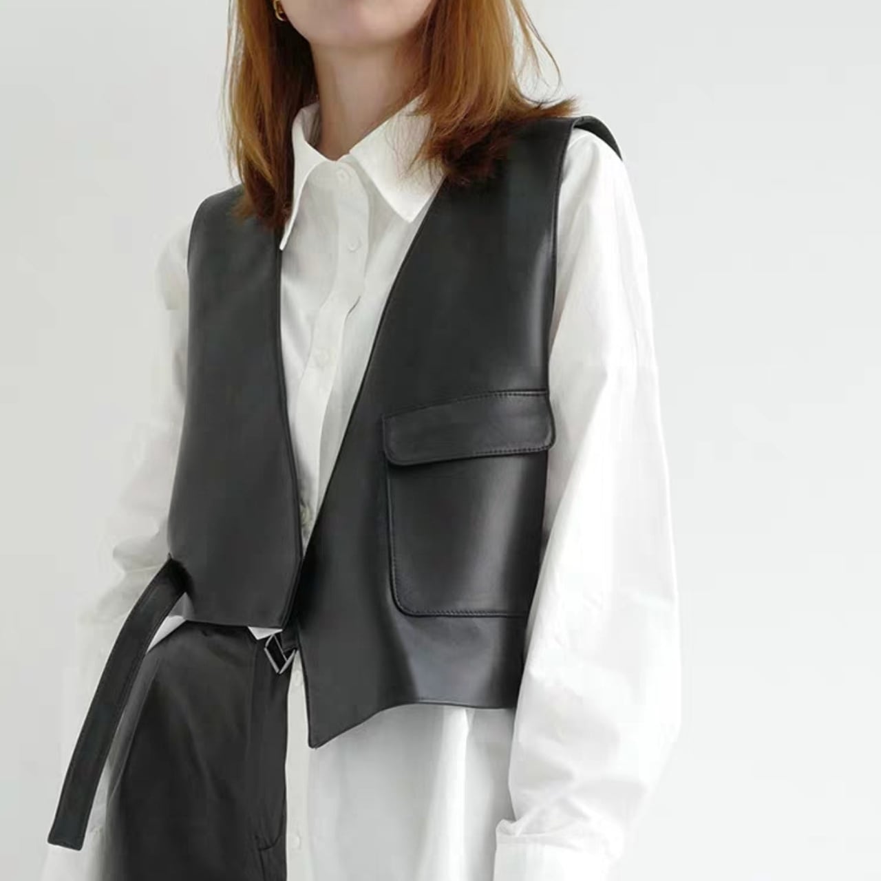 Vネックのフェイクレザージレは、洗練されたデザインが魅力です。ラップスタイルでウエストをマークし、スタイルアップ効果も期待できます。コンパクトなシルエットは、ワンピースやブラウスの上から羽織るだけで、コーディネートにアクセントをプラス。パンツスタイルにも合わせやすく、様々なシーンで活躍するアイテムです。