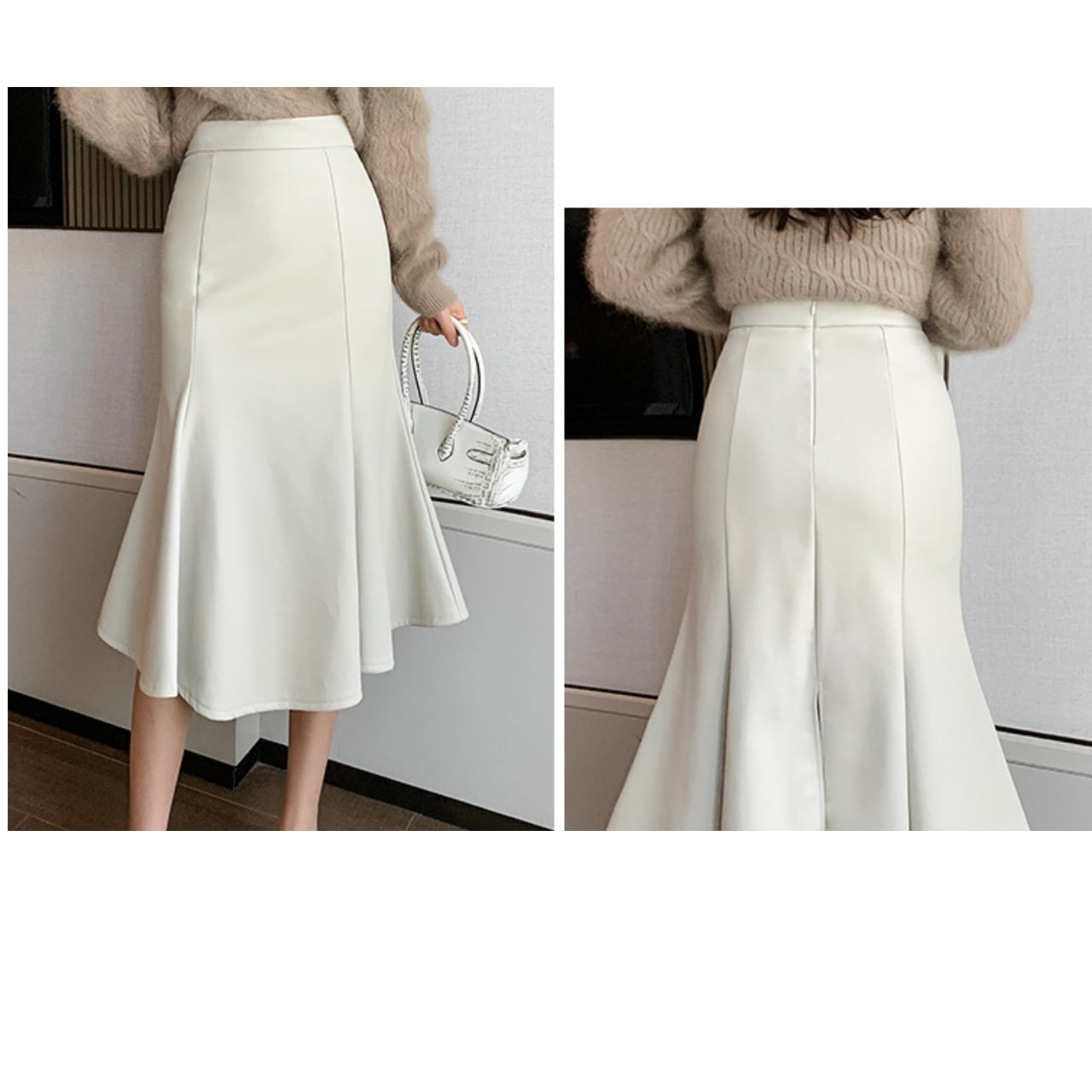 上品な光沢感が魅力のフェイクレザー素材を使用した、ミディ丈のAラインスカートです。しなやかな質感と程よいハリがあり、歩くたびに美しいフレアラインを描きます。ハイウエスト仕様でスタイルアップ効果があり、ニットやブラウスをインして着こなすと洗練された印象に。ブーツやヒールはもちろん、スニーカーとのコーディネートでカジュアルダウンも可能です。季節を問わず、幅広いシーンで活躍する一枚です。