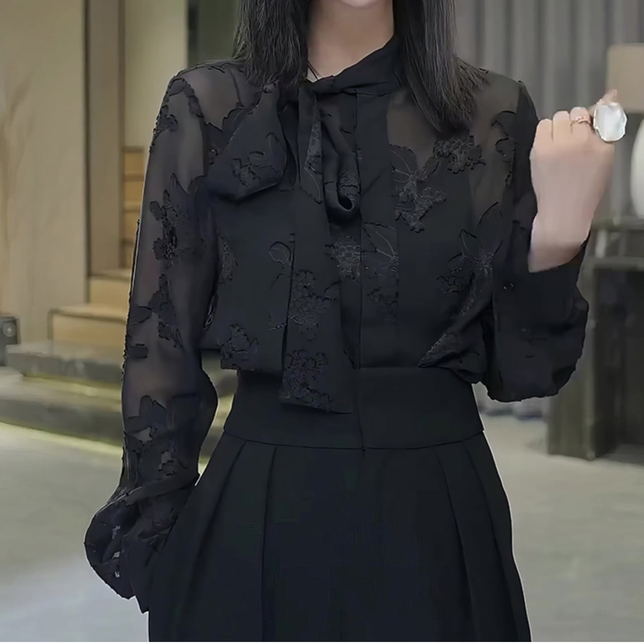 上品でクラシックな印象に、ほんのり透け感のあるシアー素材を取り入れたボタンアップシャツです。シンプルながらも洗練された雰囲気を演出します。オフィススタイルからカジュアルなコーディネートまで、幅広く活躍してくれる一枚。