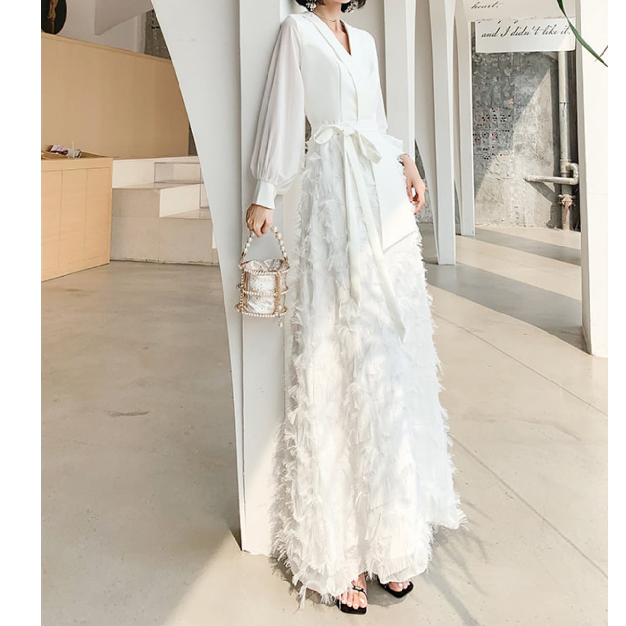 ・フラットシューズやボレロを合わせれば抜け感演出で日常にも自然に溶け込みます。