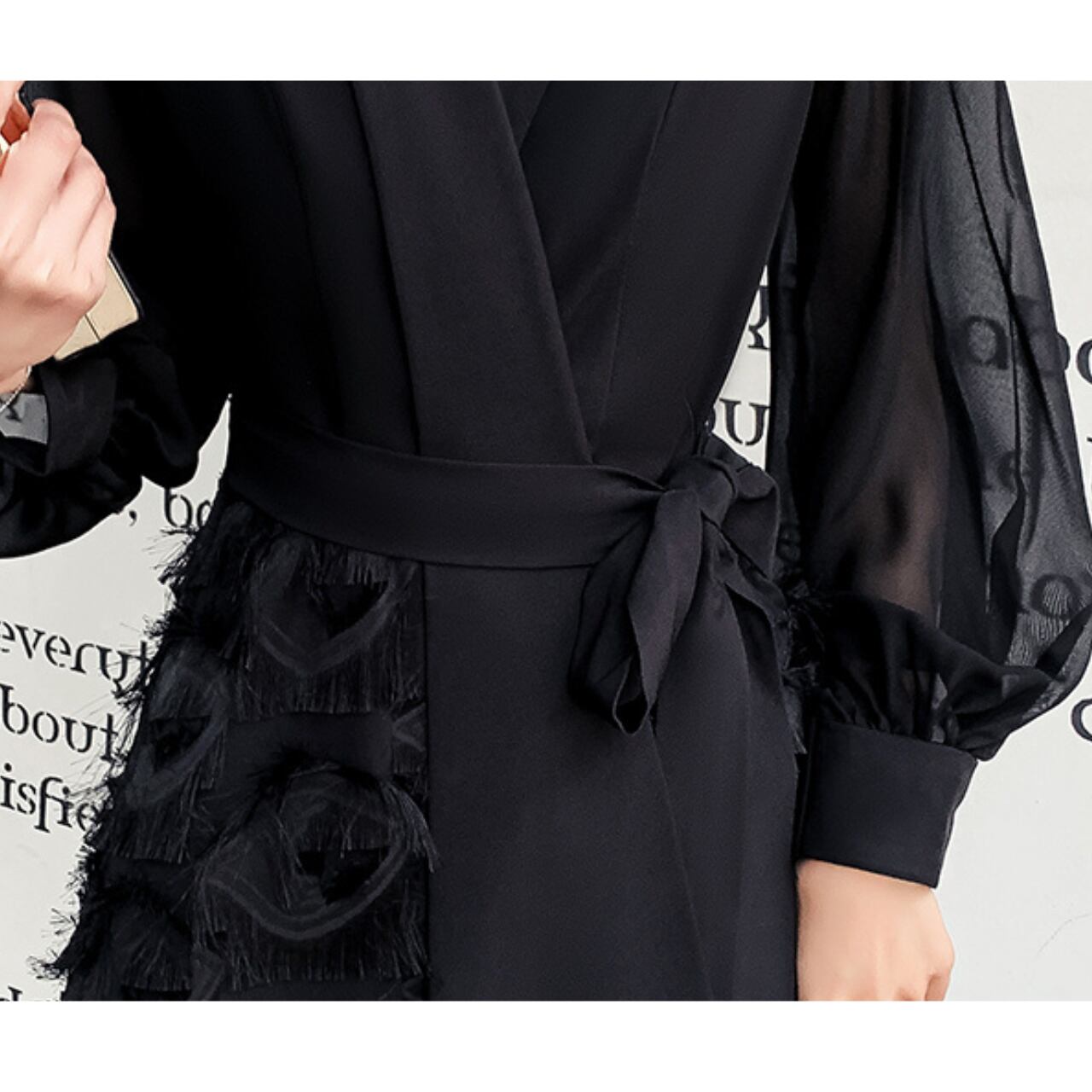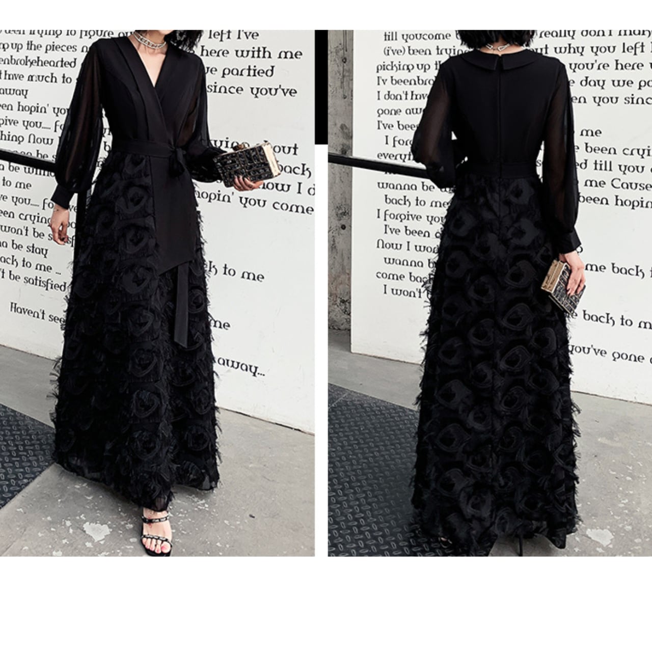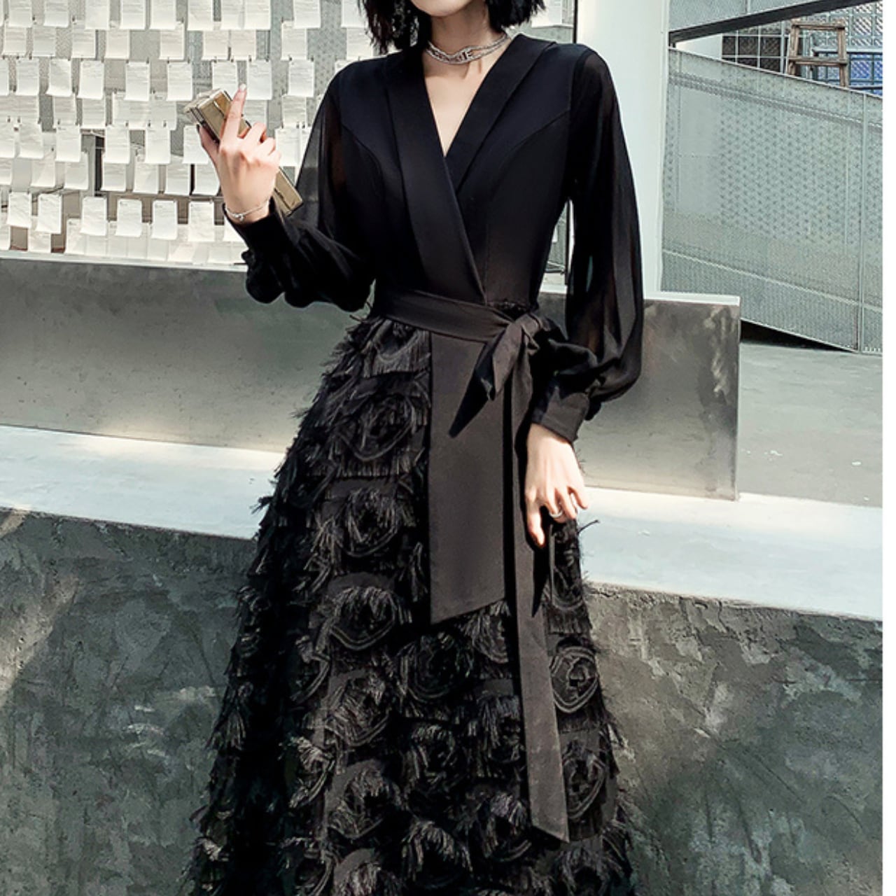 ・静かな存在感を放つ、ラップデザインのロングワンピース。