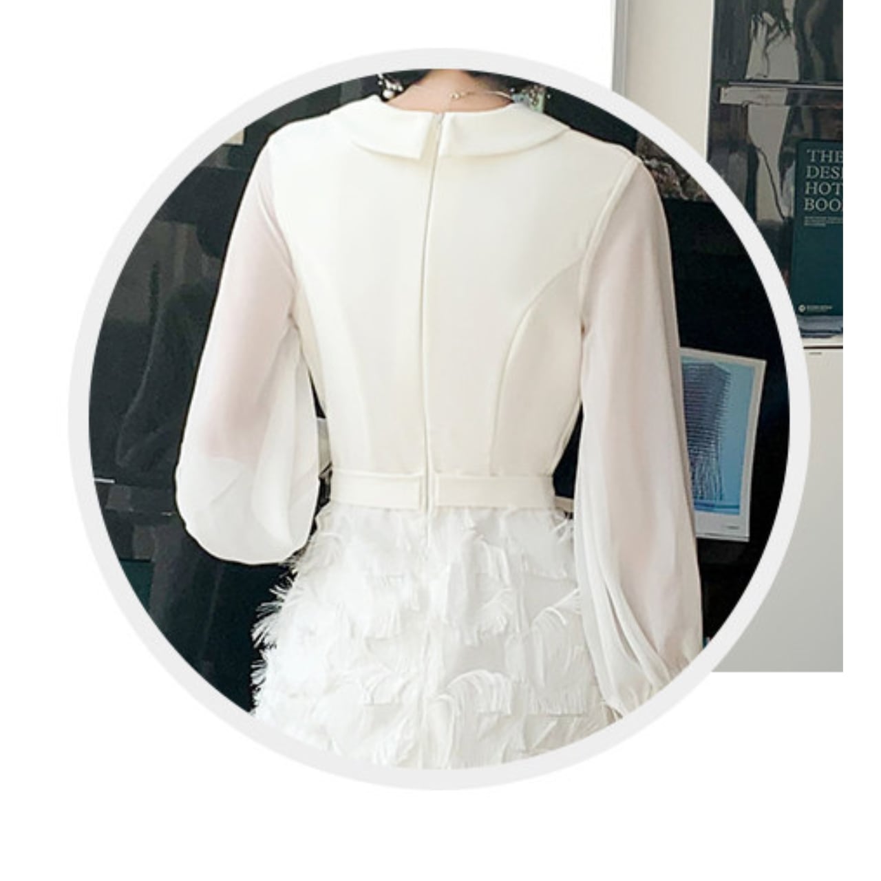・無駄な装飾を削ぎ落とした上半身と、立体感のあるスカートのコントラストが、
