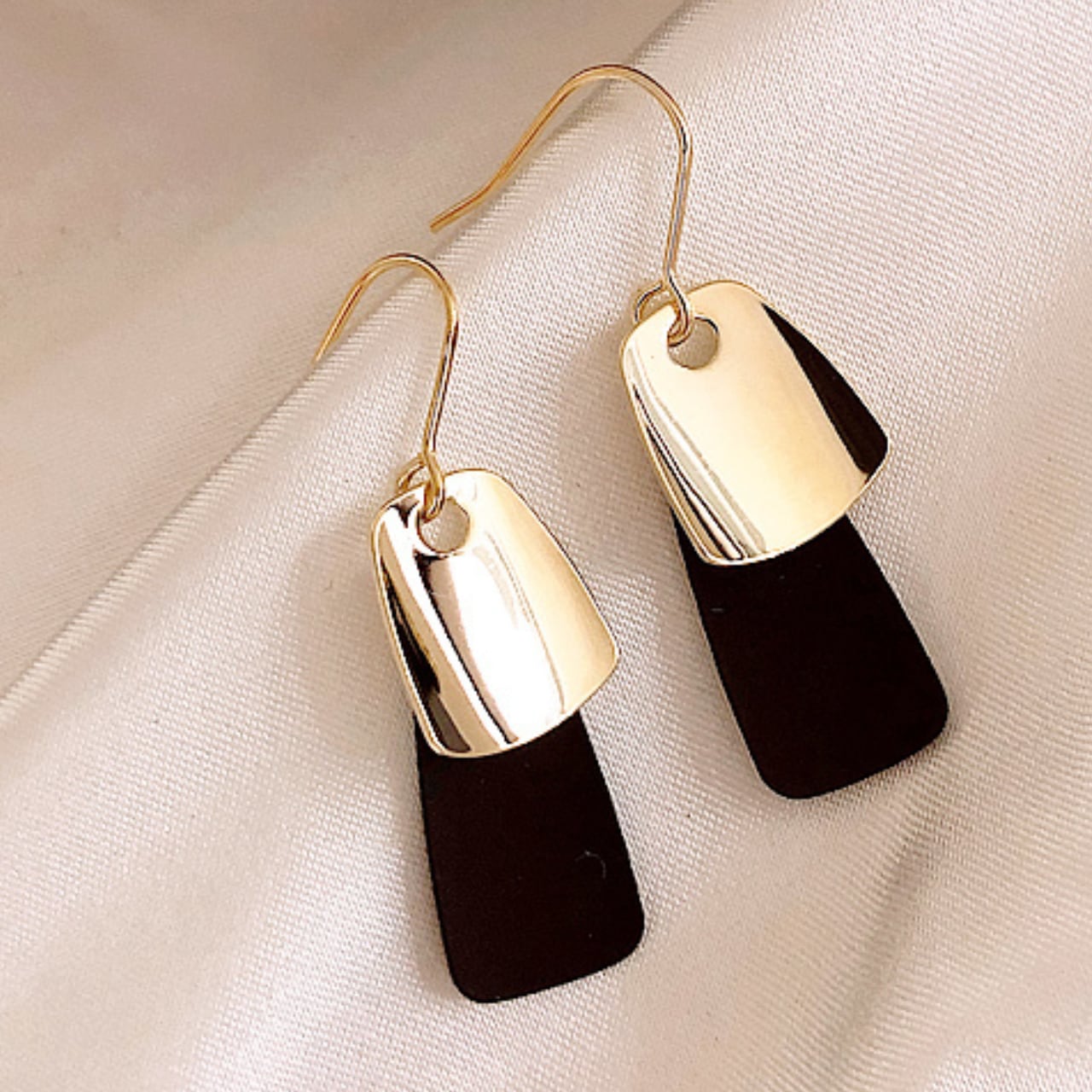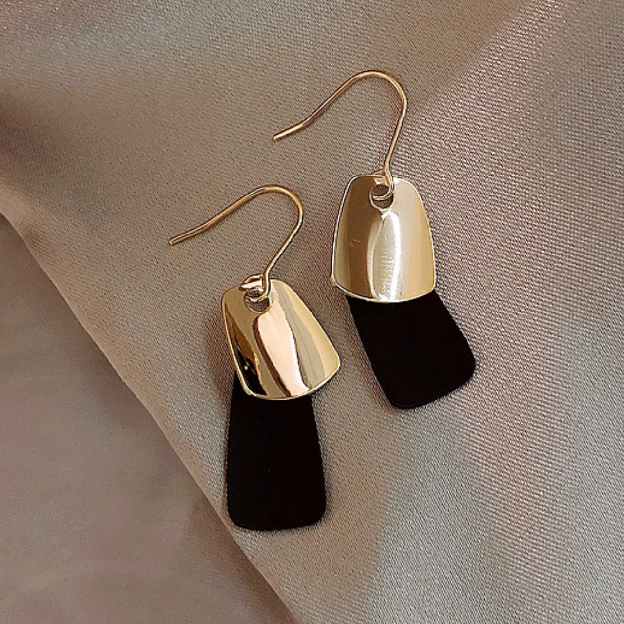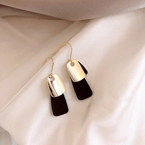 耳元でさりげなく揺れる、ジオメトリックなデザインが魅力のピアス。