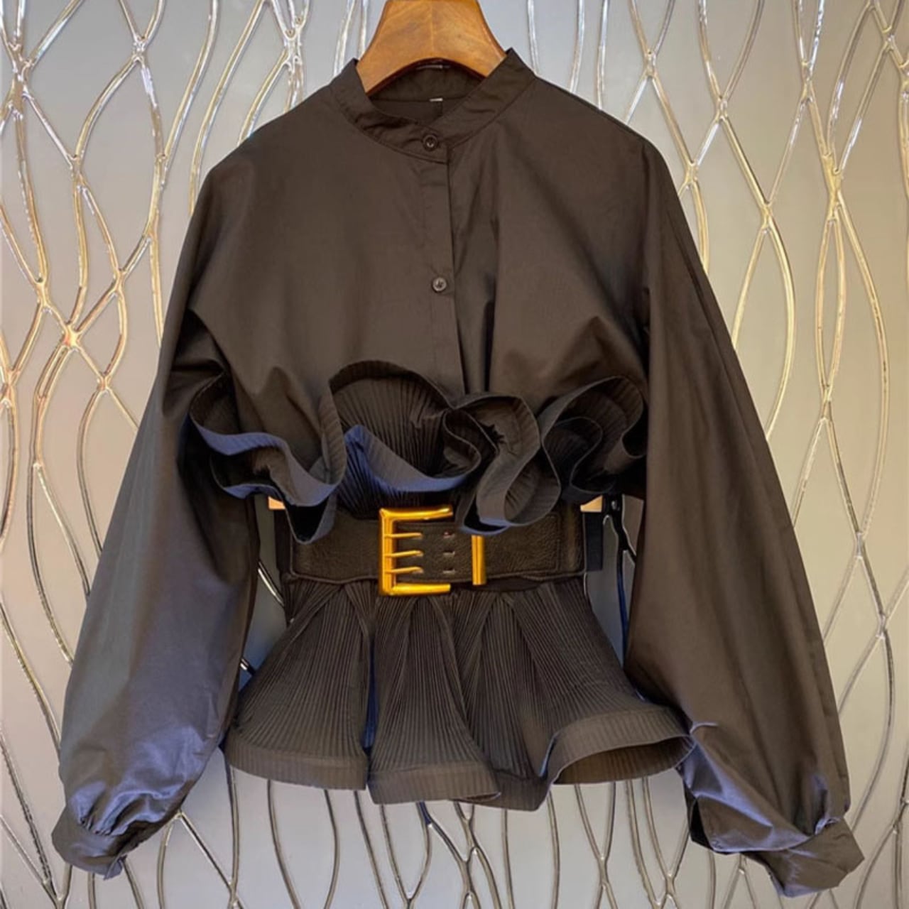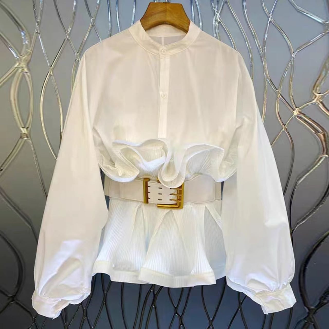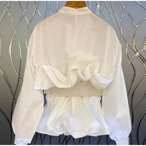 フリル使いが目を引く、スタイルアップ効果を期待できるトップス。