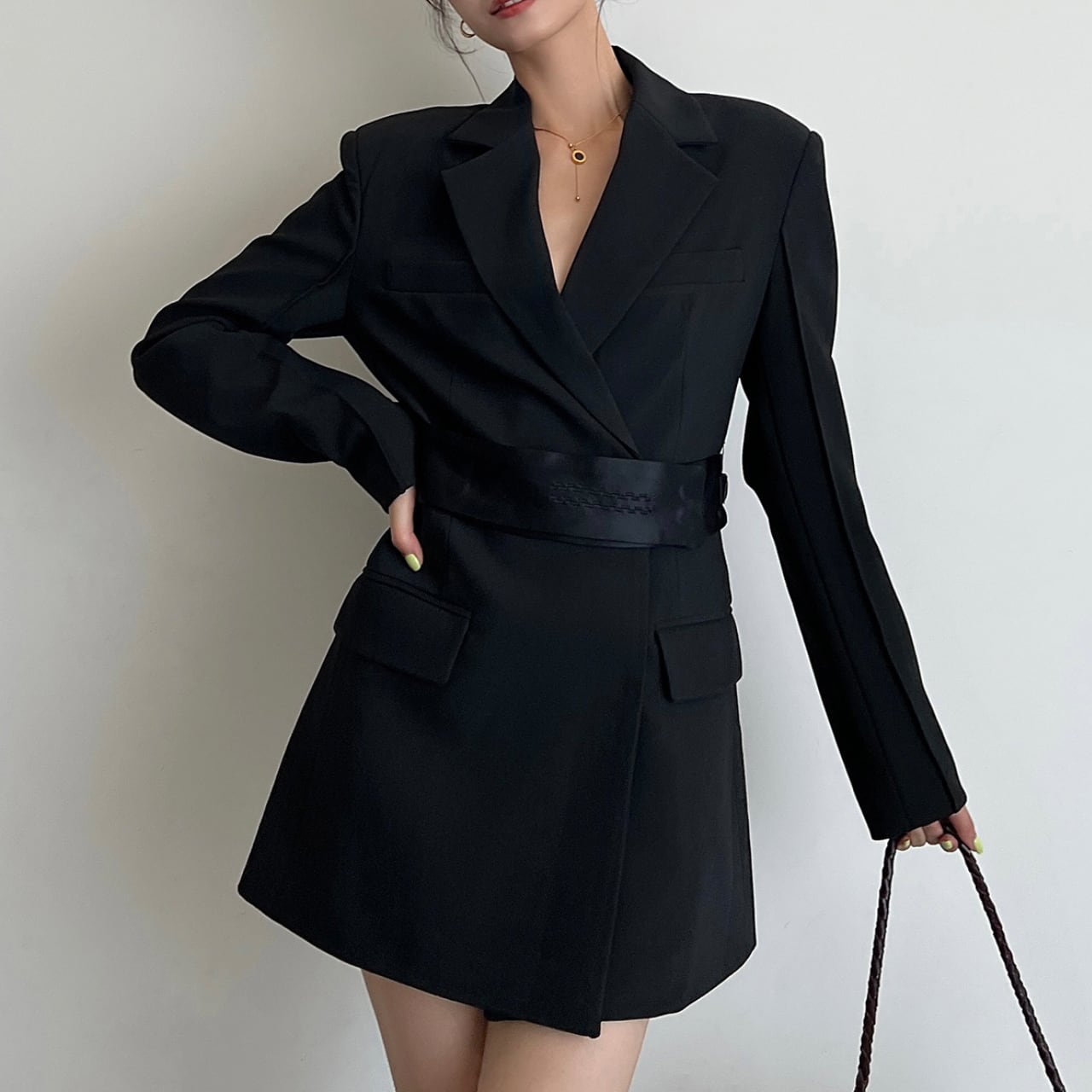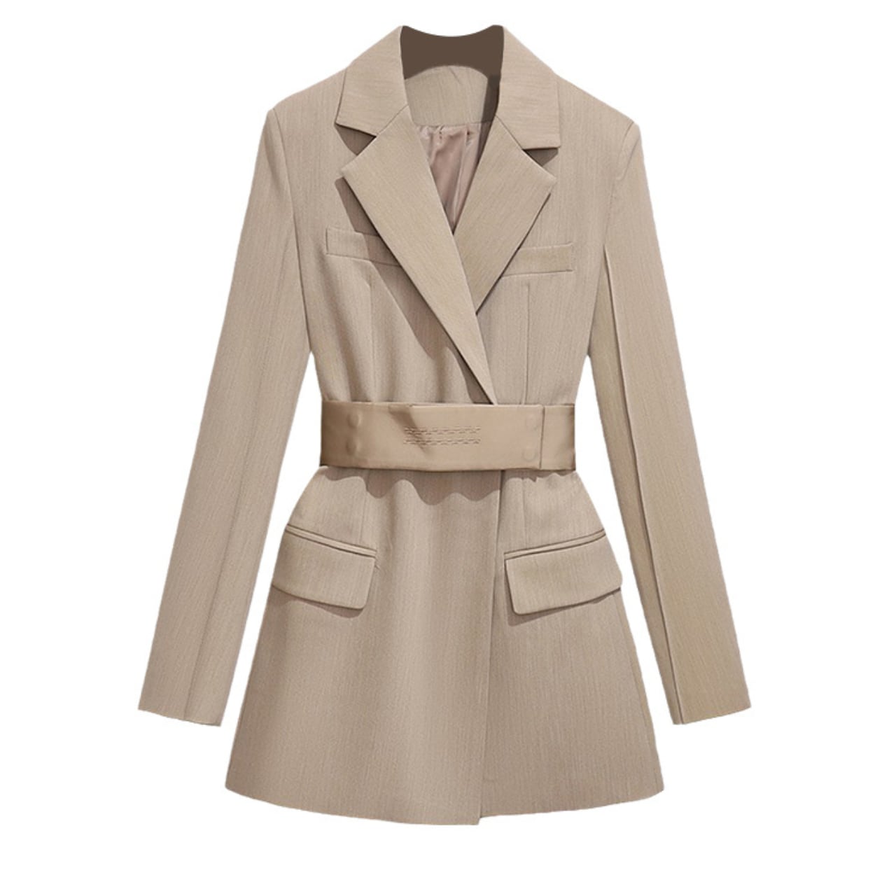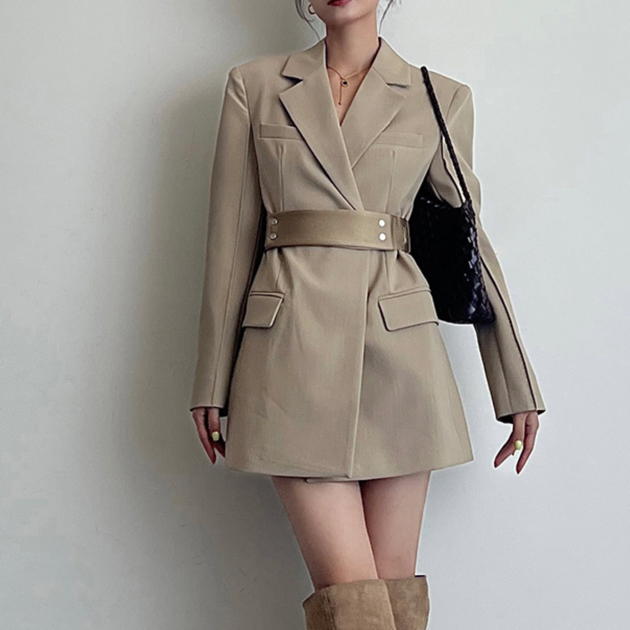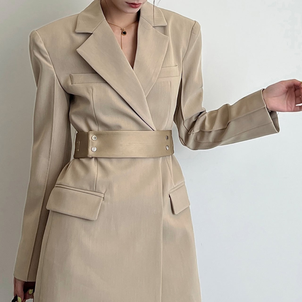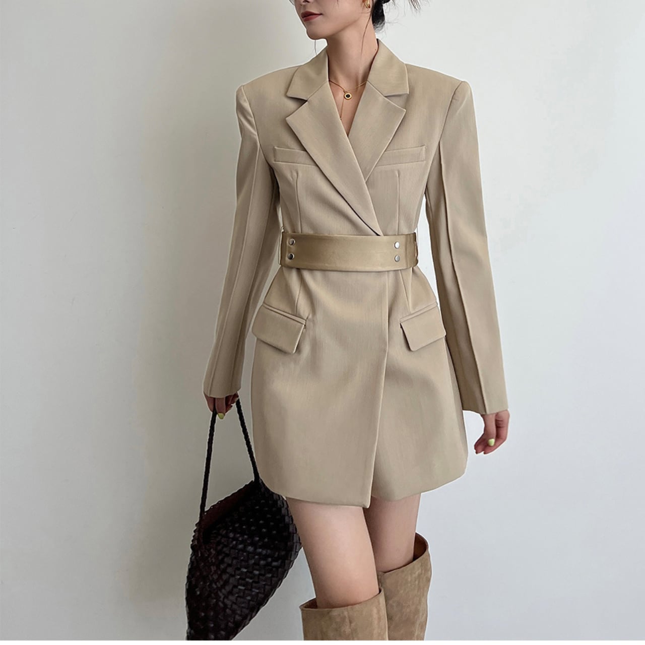 ウエストベルトがスタイルアップ効果を発揮し、美しいシルエットを演出します。