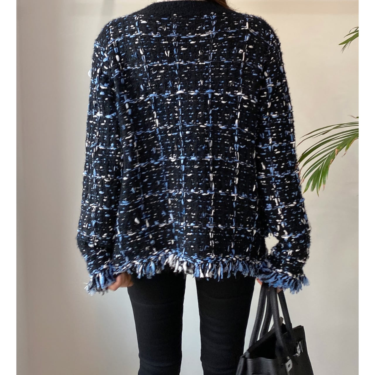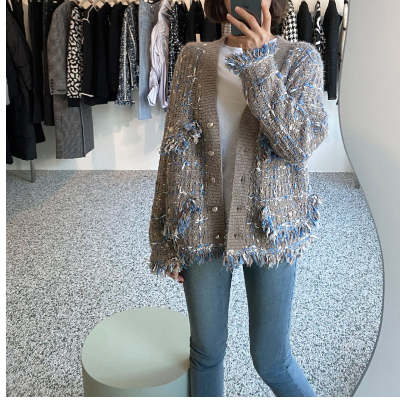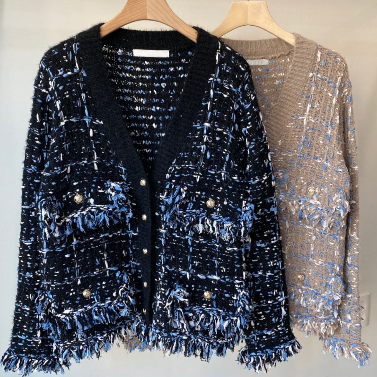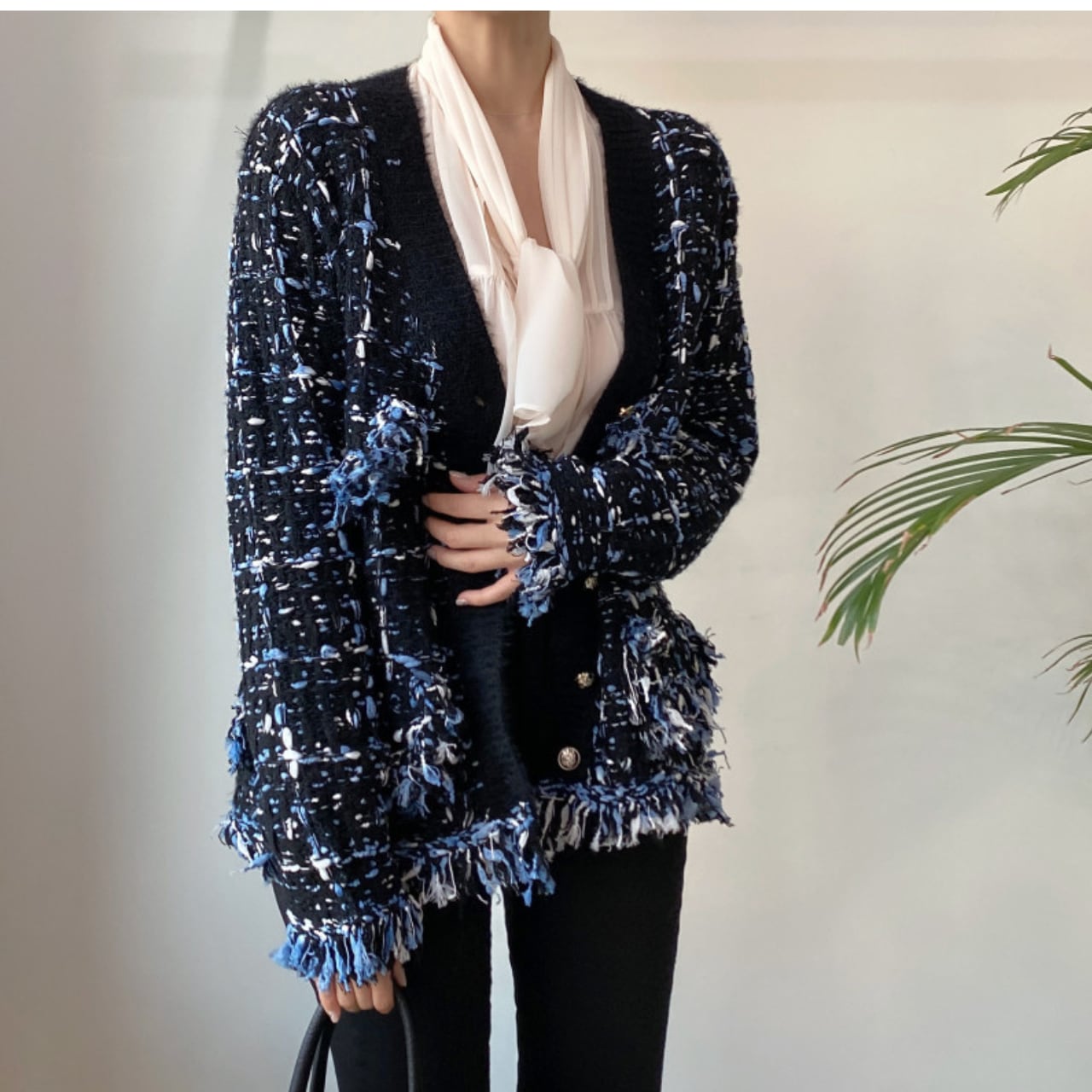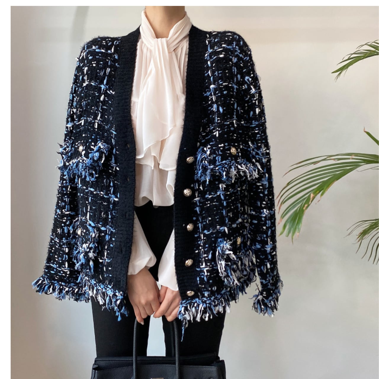 フリンジがアクセントになったノーカラージャケットは、いつものスタイルに華やかさをプラスしてくれます。ヒップが隠れる丈感で、体型カバーも叶います。