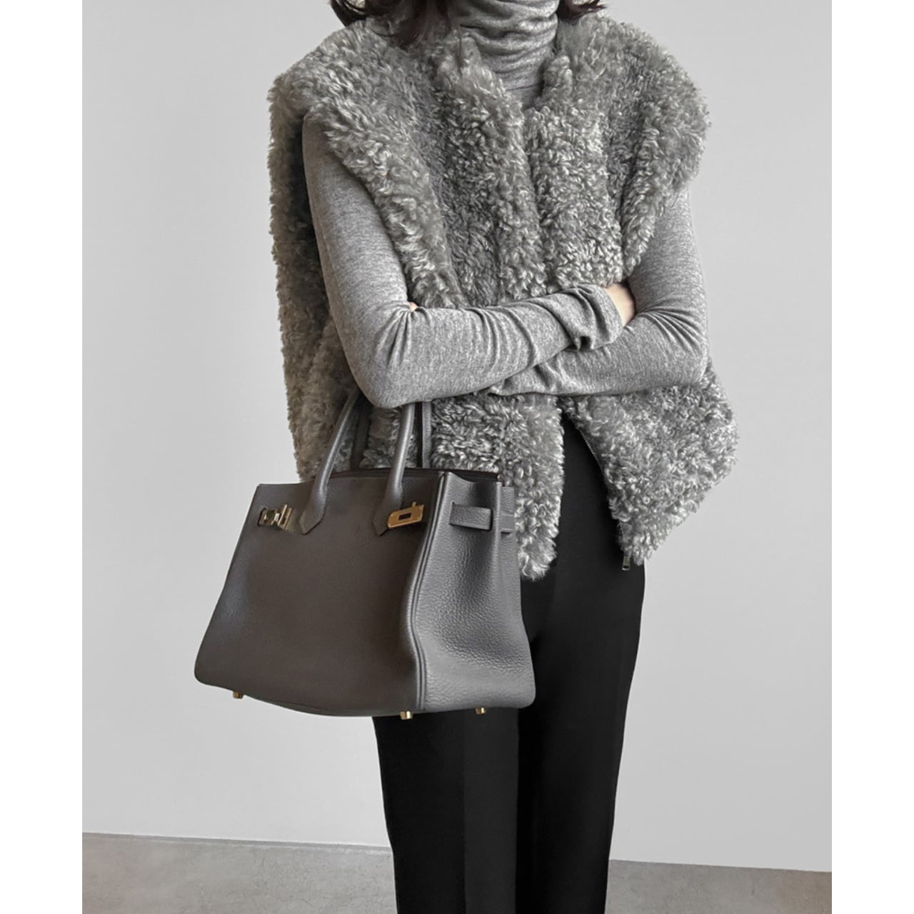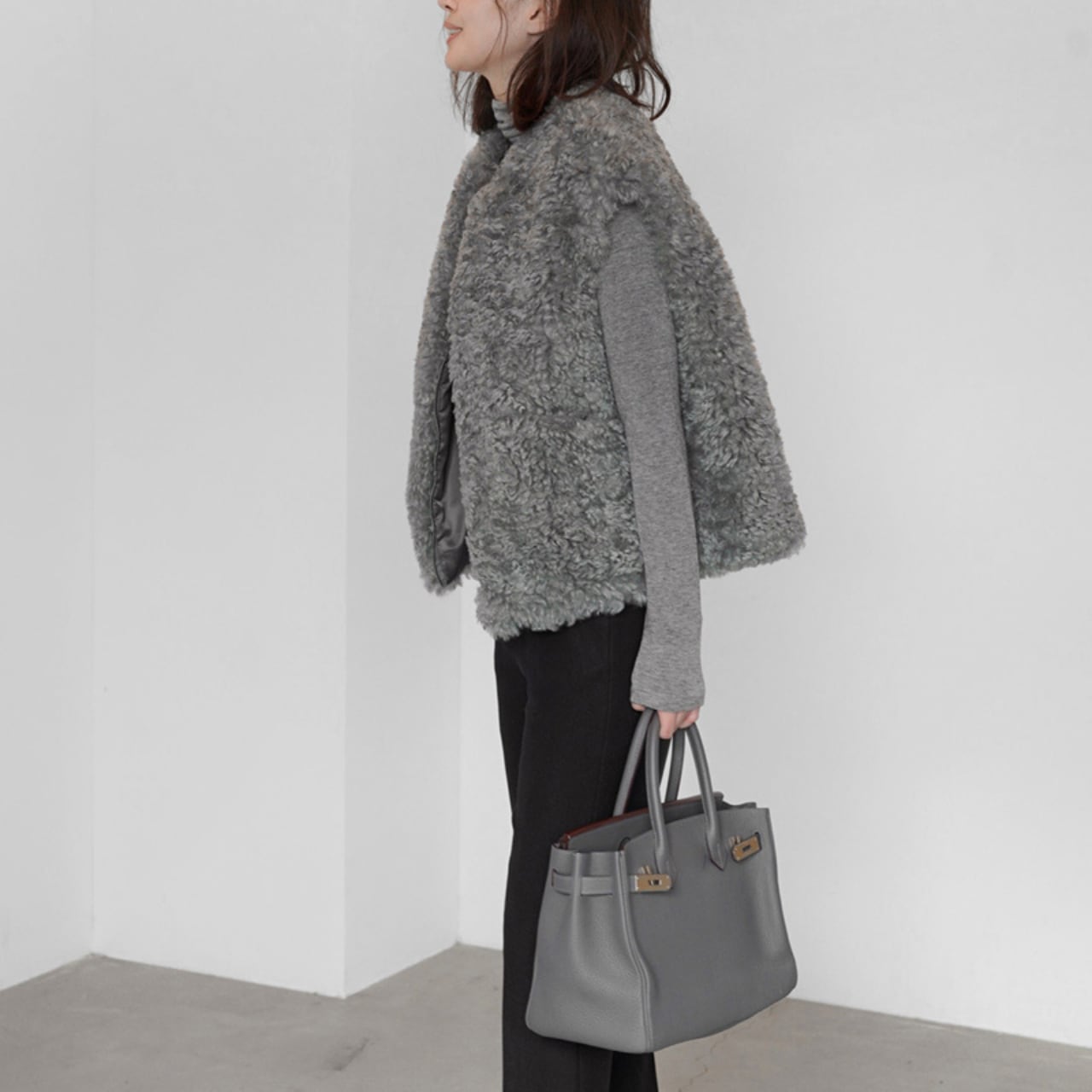 カットソーやシャツに重ねて、カジュアルにも、ワンピースに羽織って、きれいめにも着こなせる versatility が魅力です。ノーカラーなので、タートルネックやマフラーとの相性も抜群。