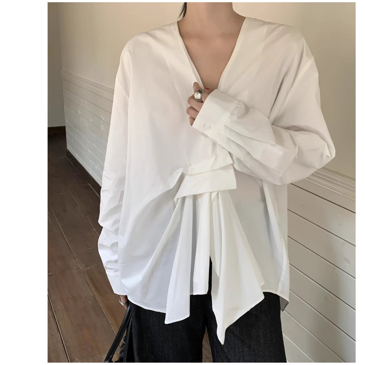 Wrap-style Hip-length Shirt L00512