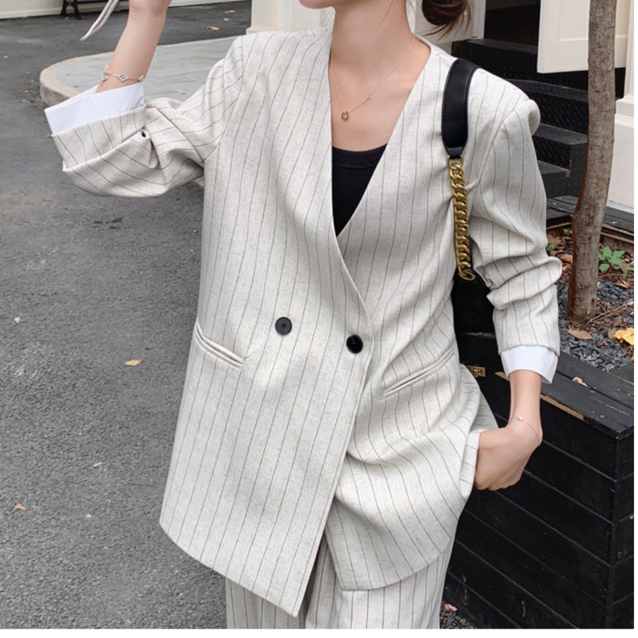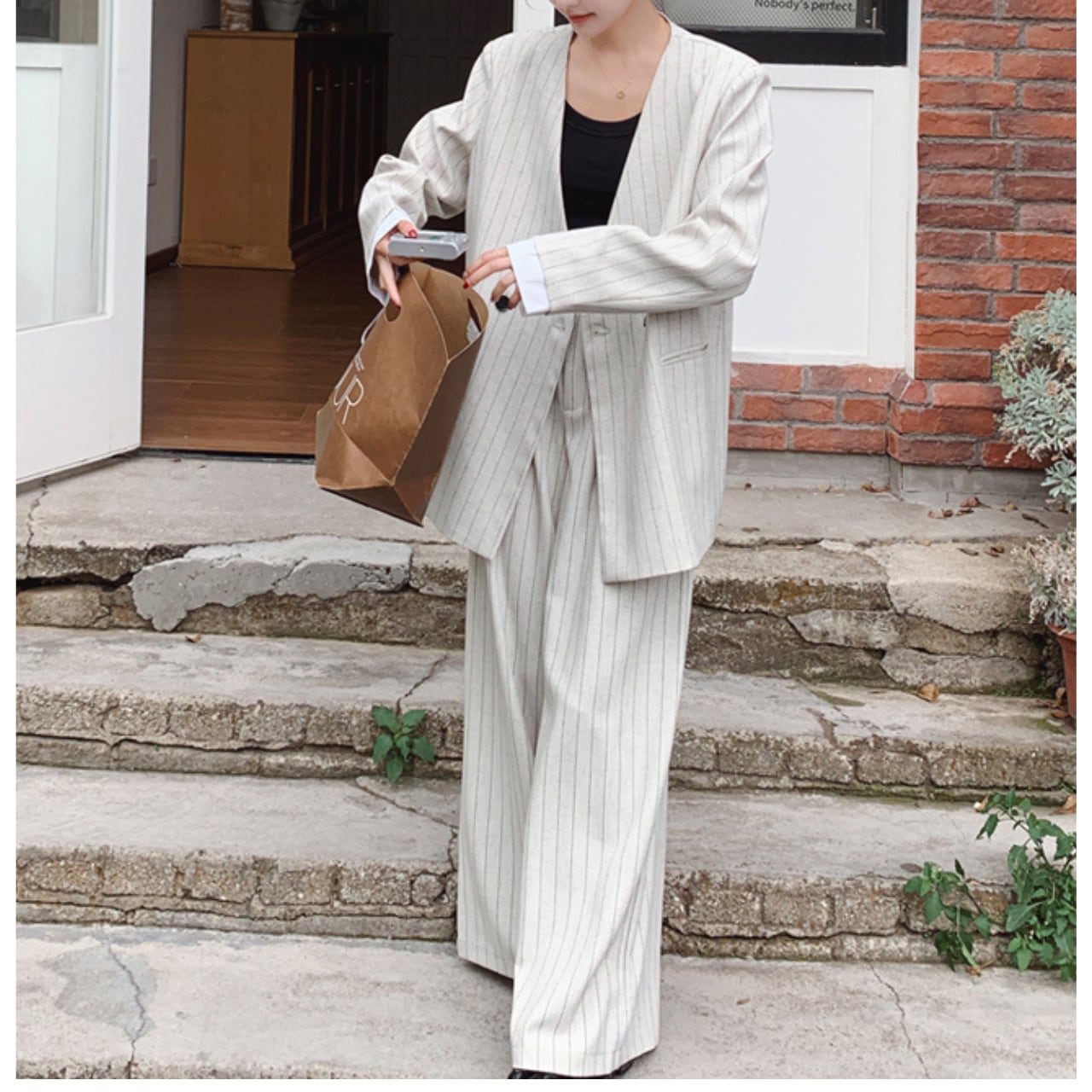 ストライプ柄がスタイリッシュな印象を与えるジャケット。