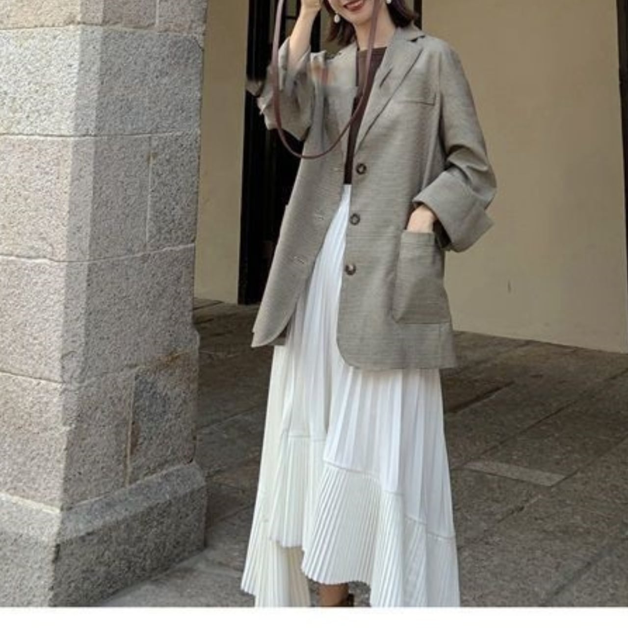 トップスをインしても、アウトでも万能なバランスで着こなせる、オンオフ問わず使える1枚です。