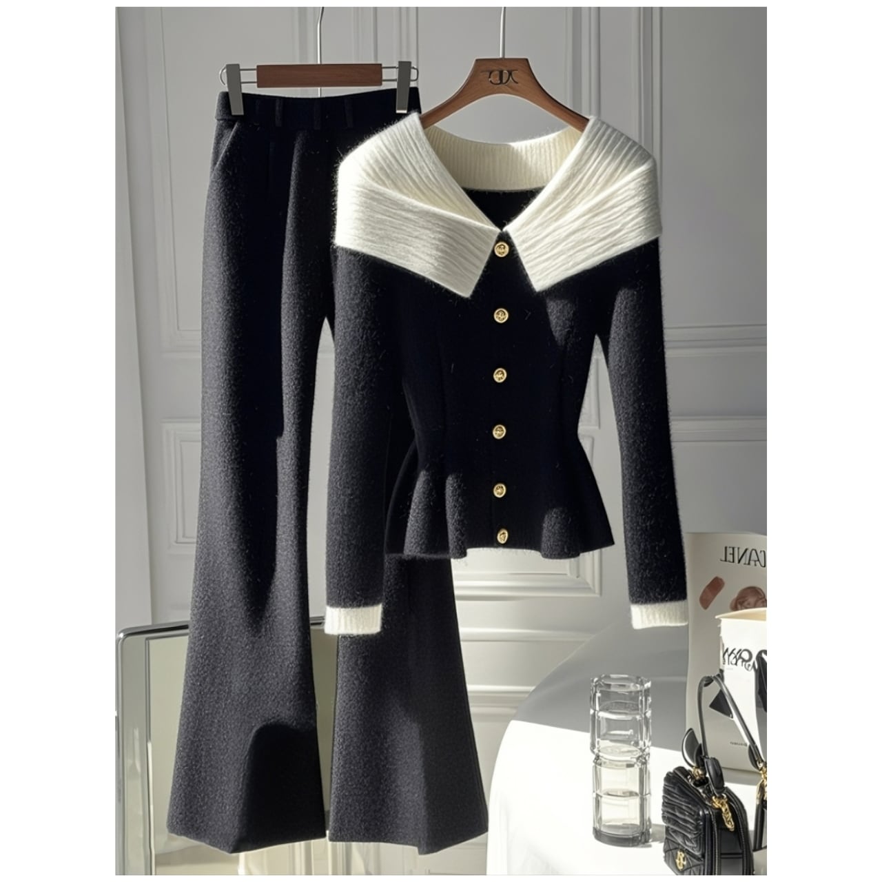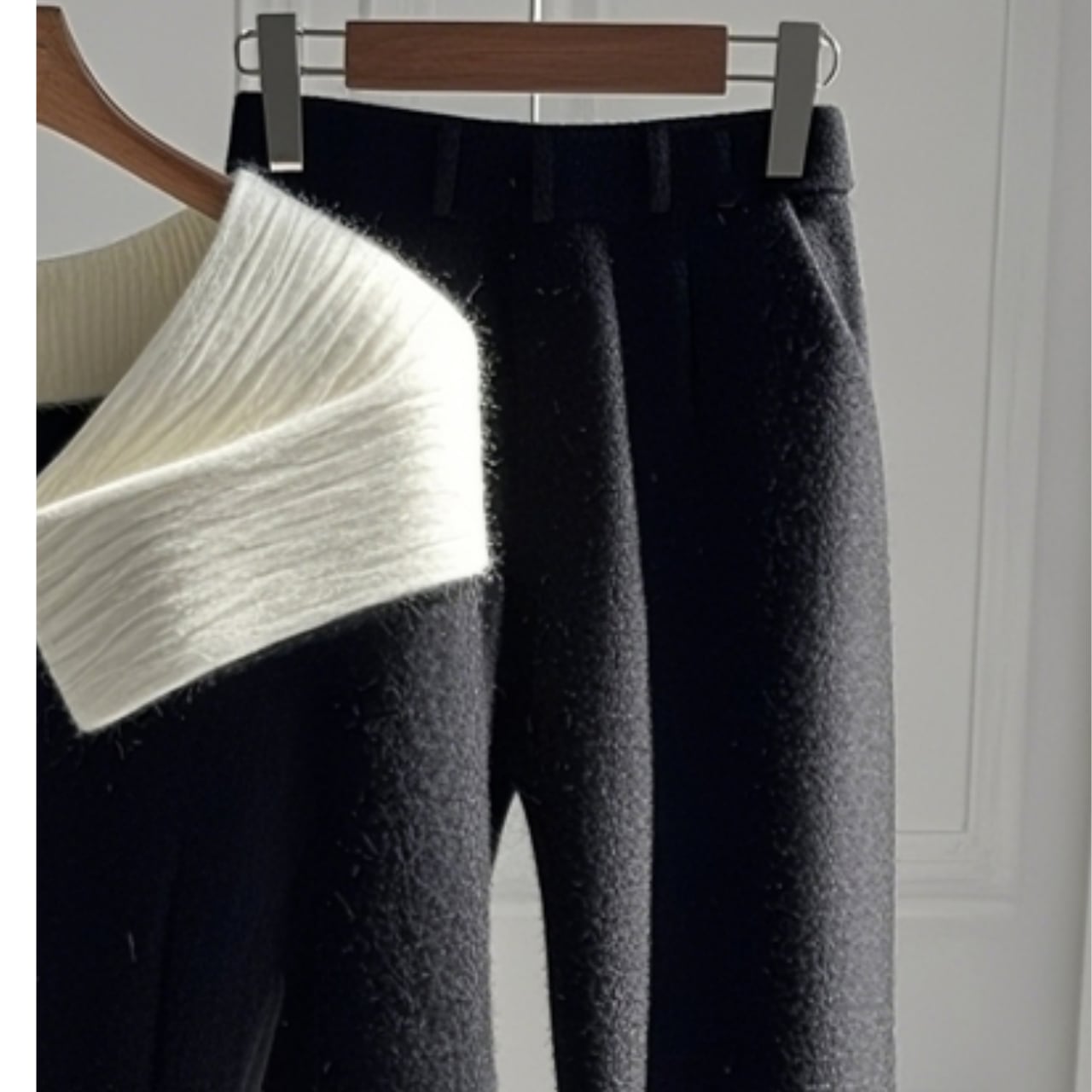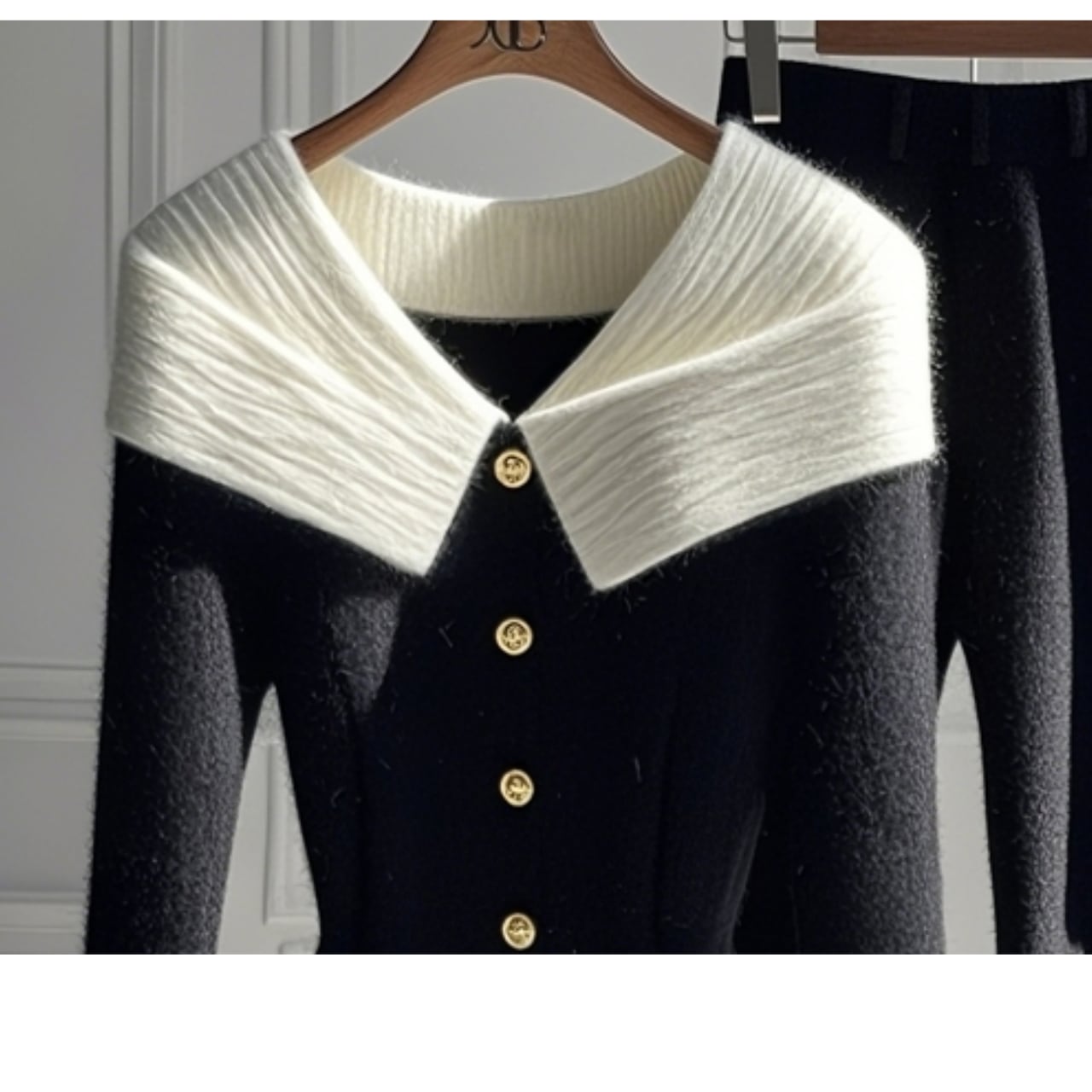 上品な印象を醸し出すニットとパンツのセットアップ。