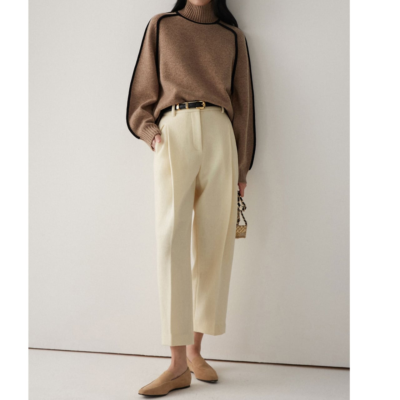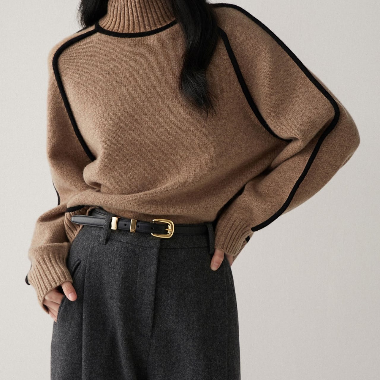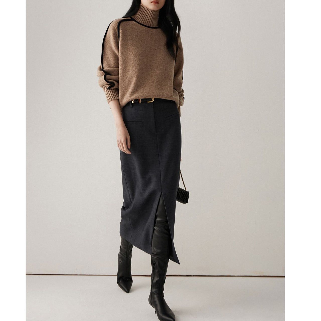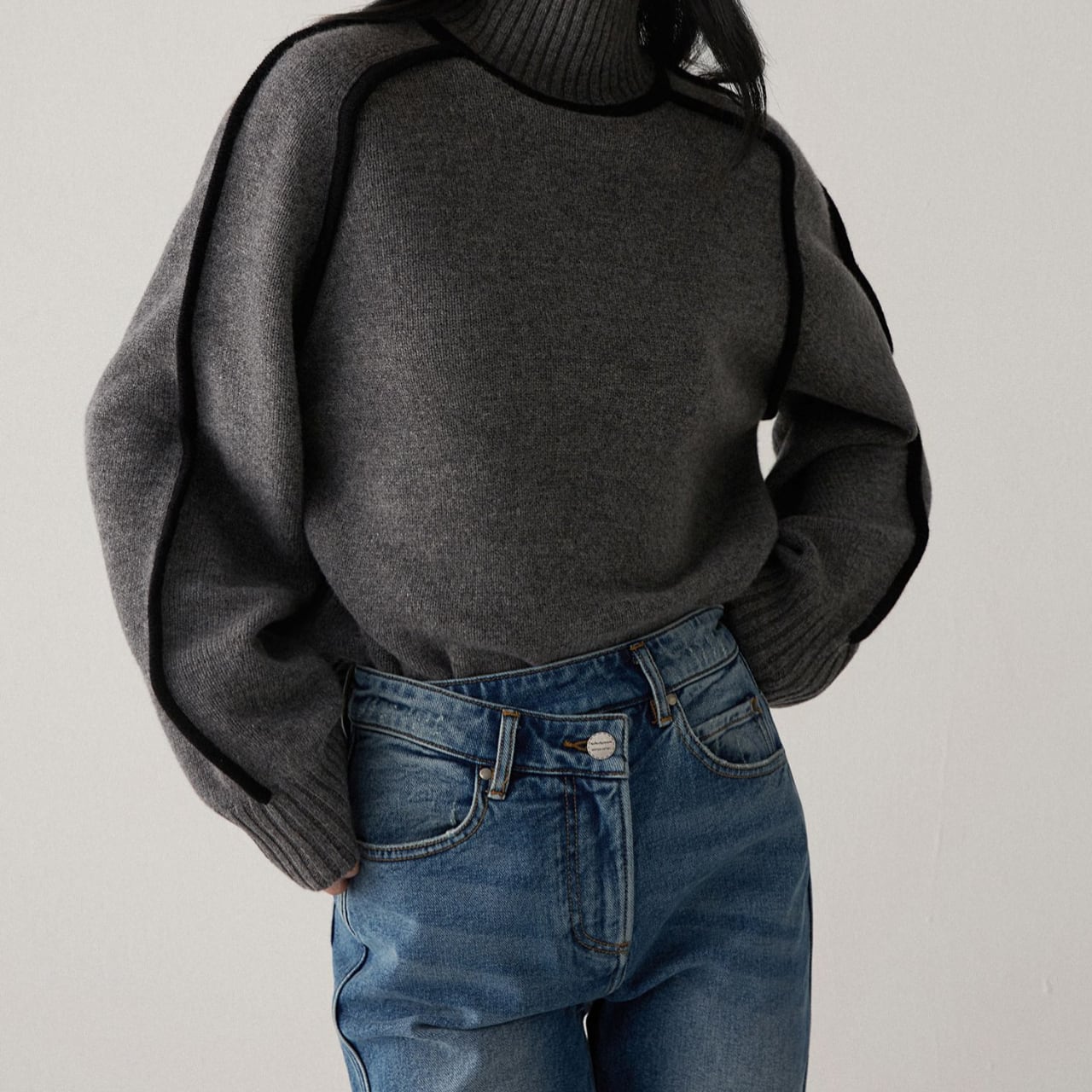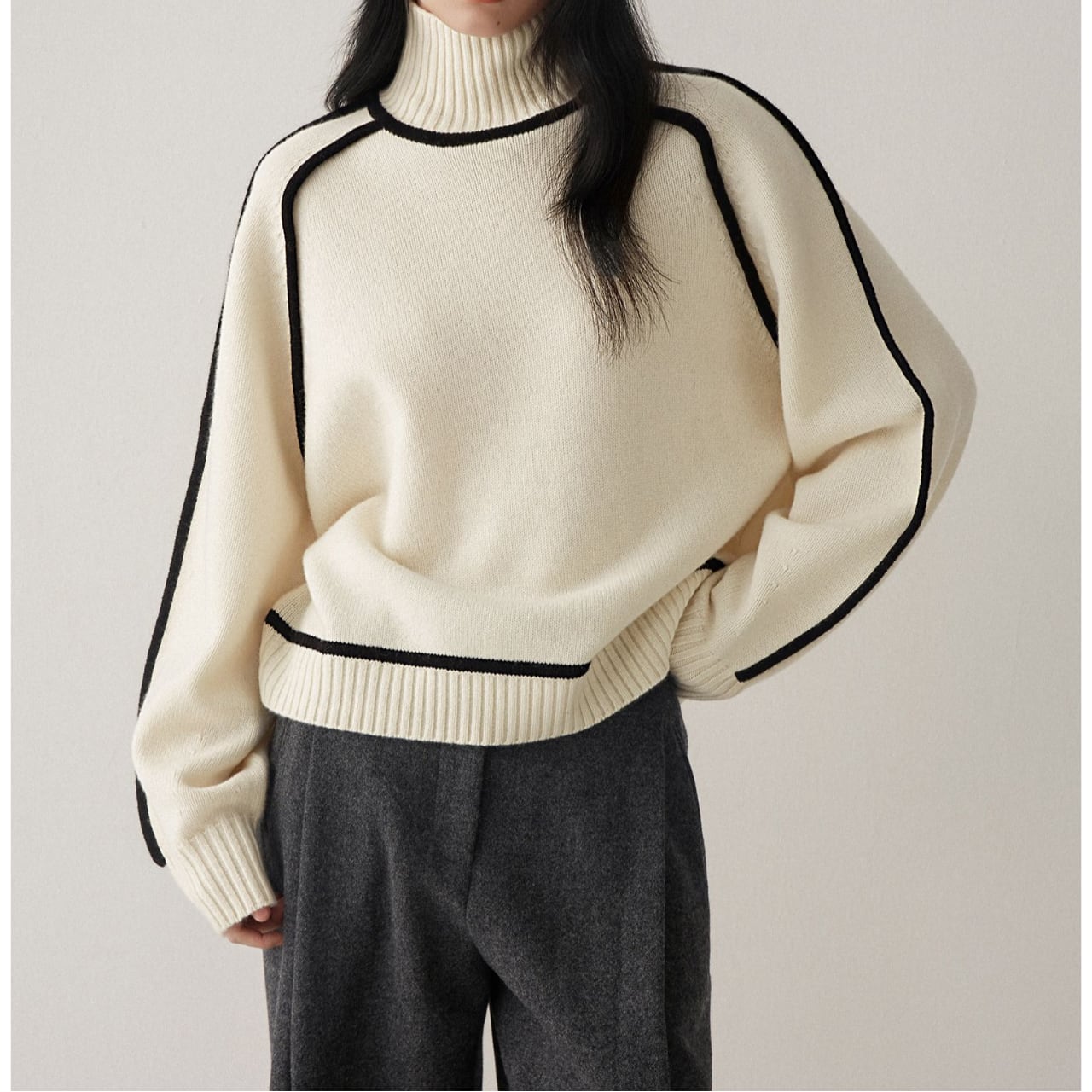 シンプルなデザインながらも、肩から袖にかけてのラインがアクセントになり、おしゃれな印象を与えます。落ち着いた色味で、普段使いからオフィスまで、様々なシーンで活躍する一枚です。