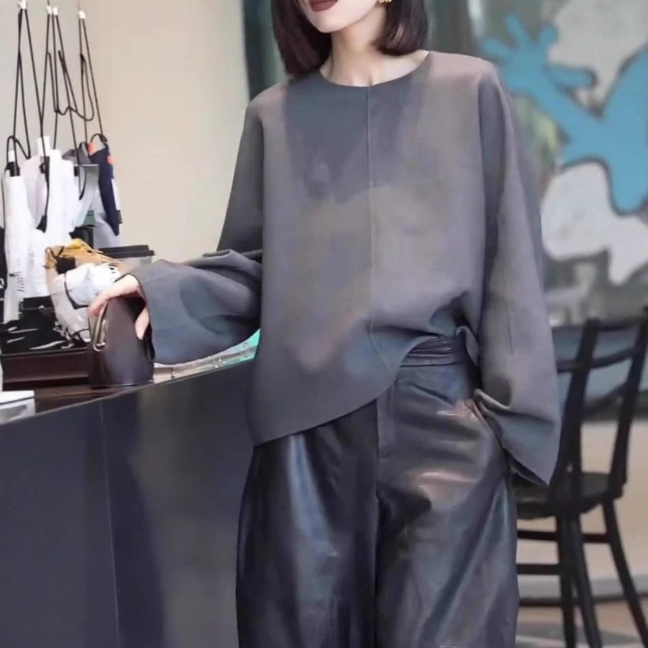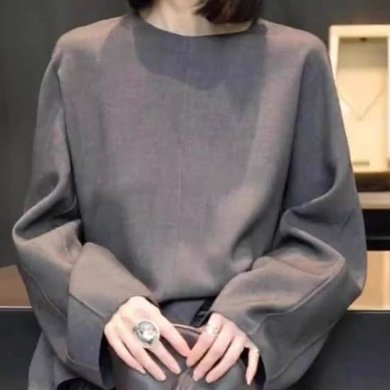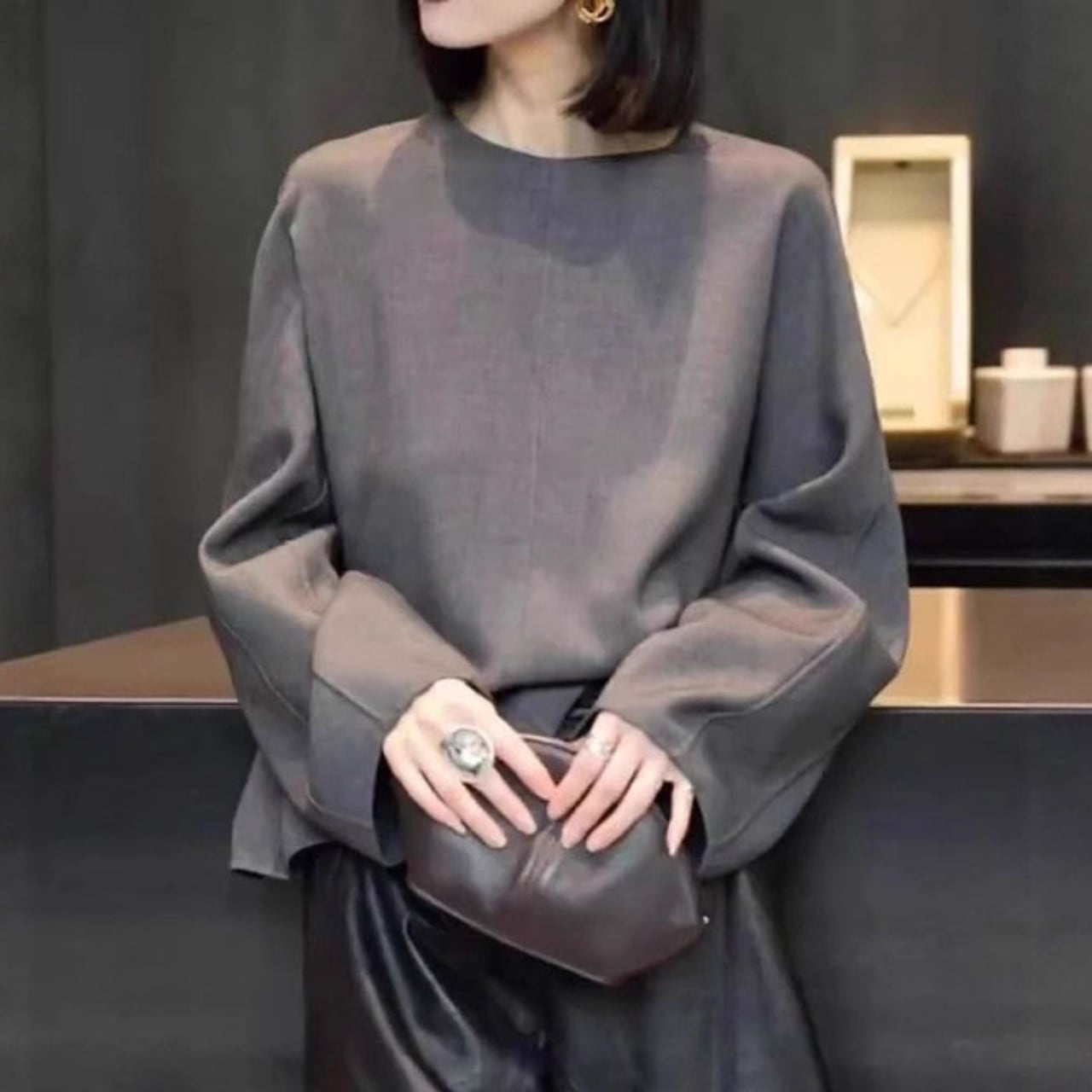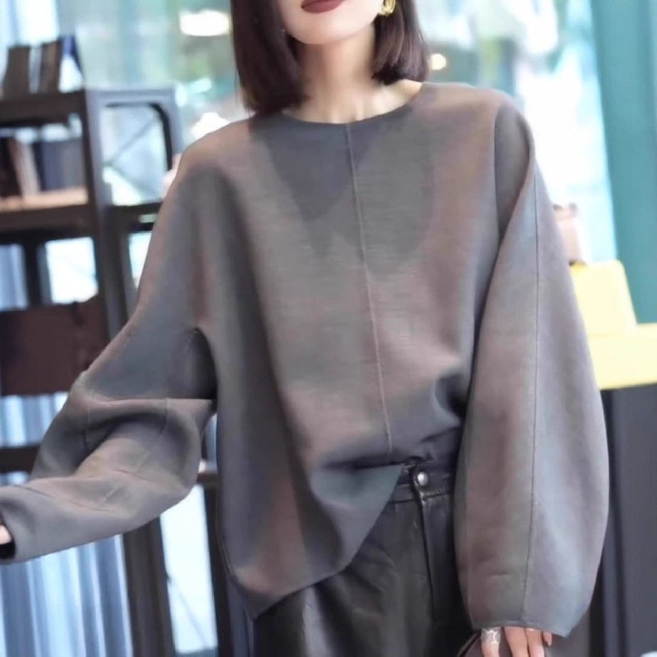 Long-sleeve wide plain blouse L00564