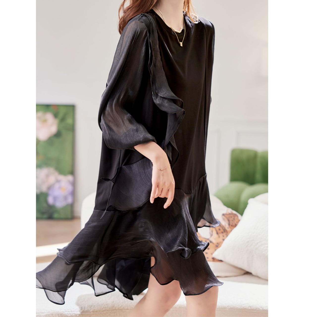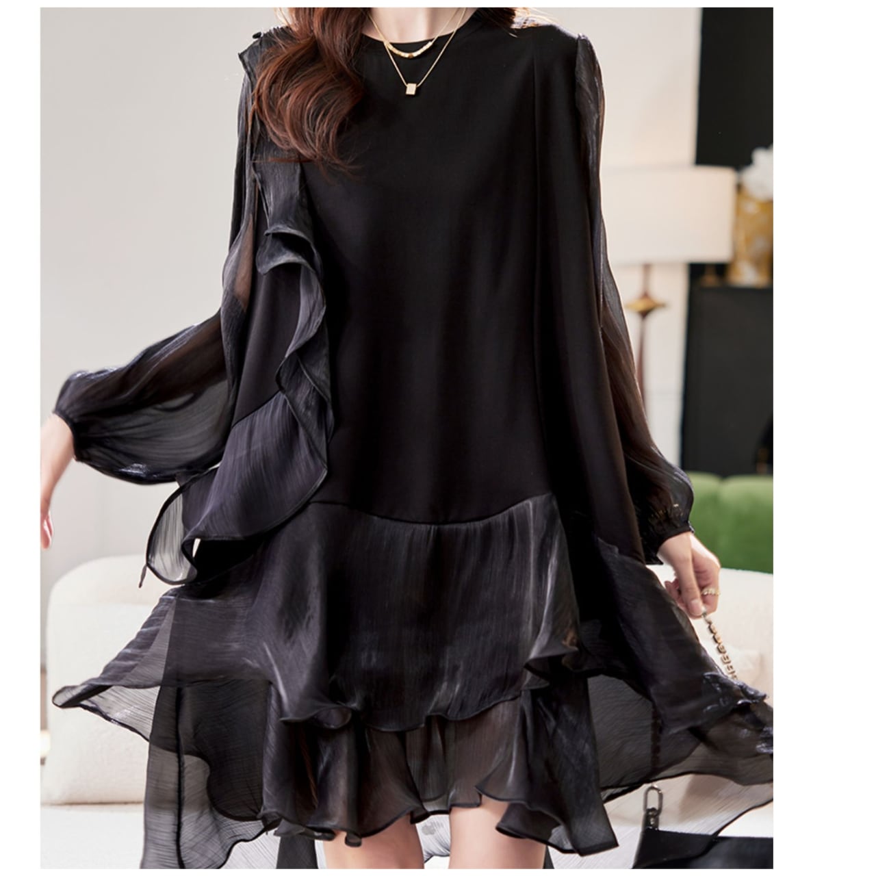 フリルがあしらわれたデザインで、大人の可愛らしさを演出します。